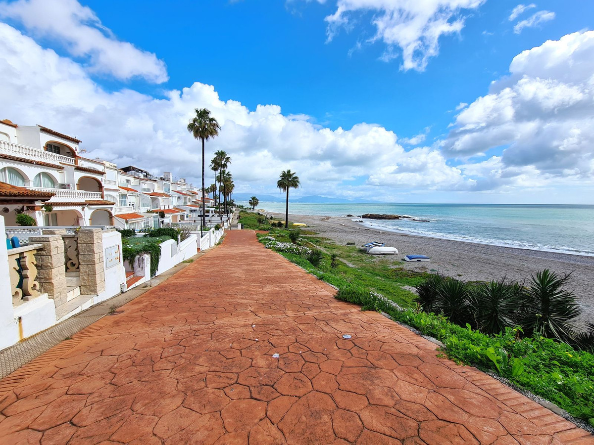 Huset ligger på anden linje af stranden, kun få skridt fra den smukke kyststi, der forbinder hele Costa del Sol. Med Sabinillas og den prestigefyldte Sotogrande kun 5 minutters kørsel væk, finder du supermarkeder, restauranter og butikker. Ejendommen er SYDVENDT, og huset har en skøn PRIVAT HAVE med veranda, hvor indgangen til huset er placeret, som er indrettet i 2 etager plus solarium. I stueetagen finder vi en stue-spisestue med et fuldt udstyret åbent køkken, og har også et toilet. På første sal finder vi de 2 soveværelser, et master bedroom og et enkelt soveværelse, samt deler et komplet badeværelse udstyret med bruser. På øverste etage finder vi solariet med delvis havudsigt og et værelse, der i dag bruges som vaskerum. Huset har smukke haveområder og en fælles pool. EN STOR MULIGHED FOR AT OPLEVE LUKSUSSEN VED AT BO VED HAVET! VI ANBEFALER DIT BESØG!