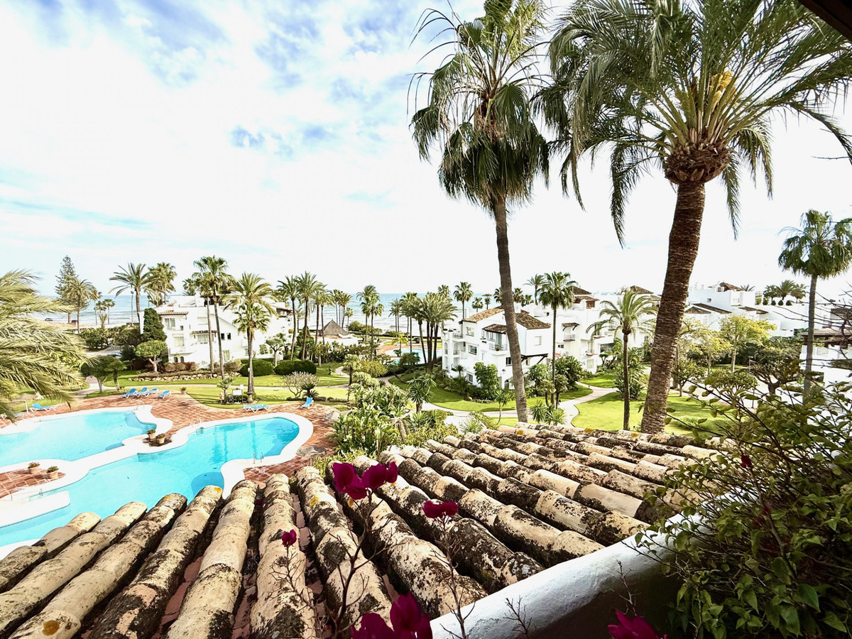 This elegant 2-bedroom penthouse in the sought-after Alcazaba Beach complex combines Mediterranean charm with modern comfort. Originally designed as a 3-bedroom apartment, it has been transformed into a spacious home with a large living area and a separate dining room, enjoying a south-facing orientation with breathtaking sea and garden views.