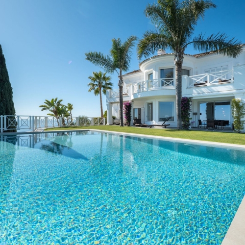 Classical style villa with modern guest house and pool on an ample plot in the heart of Sierra Blanca, Marbella Golden Mile. Built to high specifications and immaculately presented the property offers panoramic sea views.