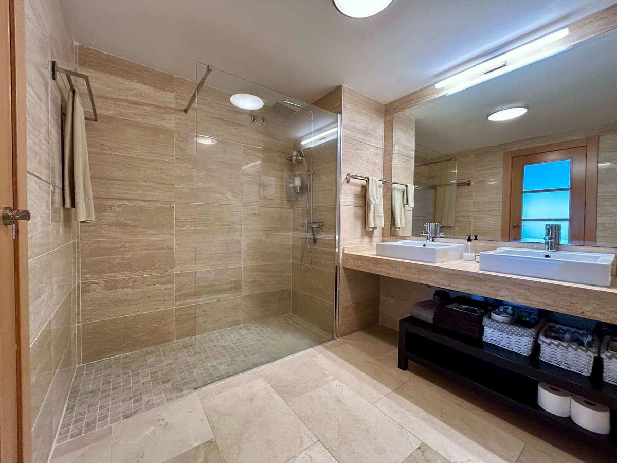 With a constructed area of 128 m² plus a 78 m² terrace, this ground floor apartment is located in a very private block of the development and has 3 bedrooms and 2 bathrooms, perfect for the whole family. All terraces are glazed to enjoy the fantastic views all year-round.