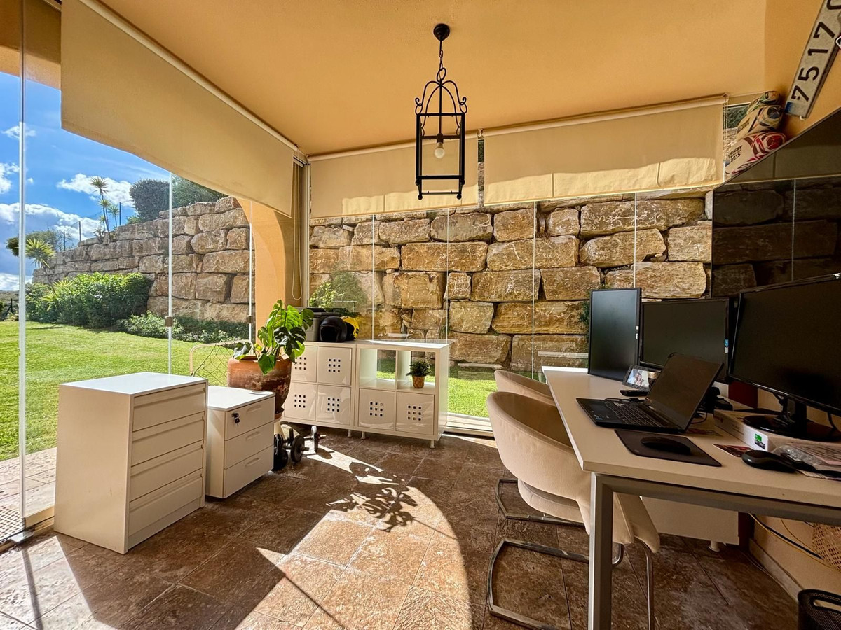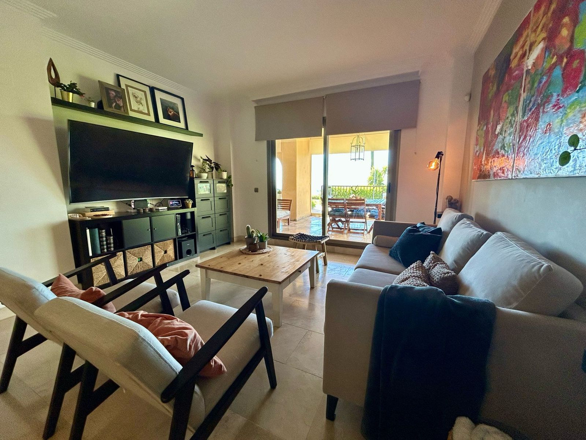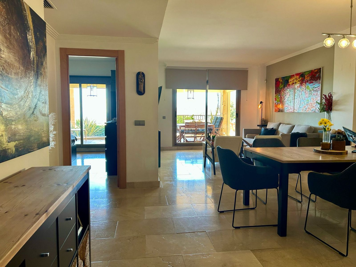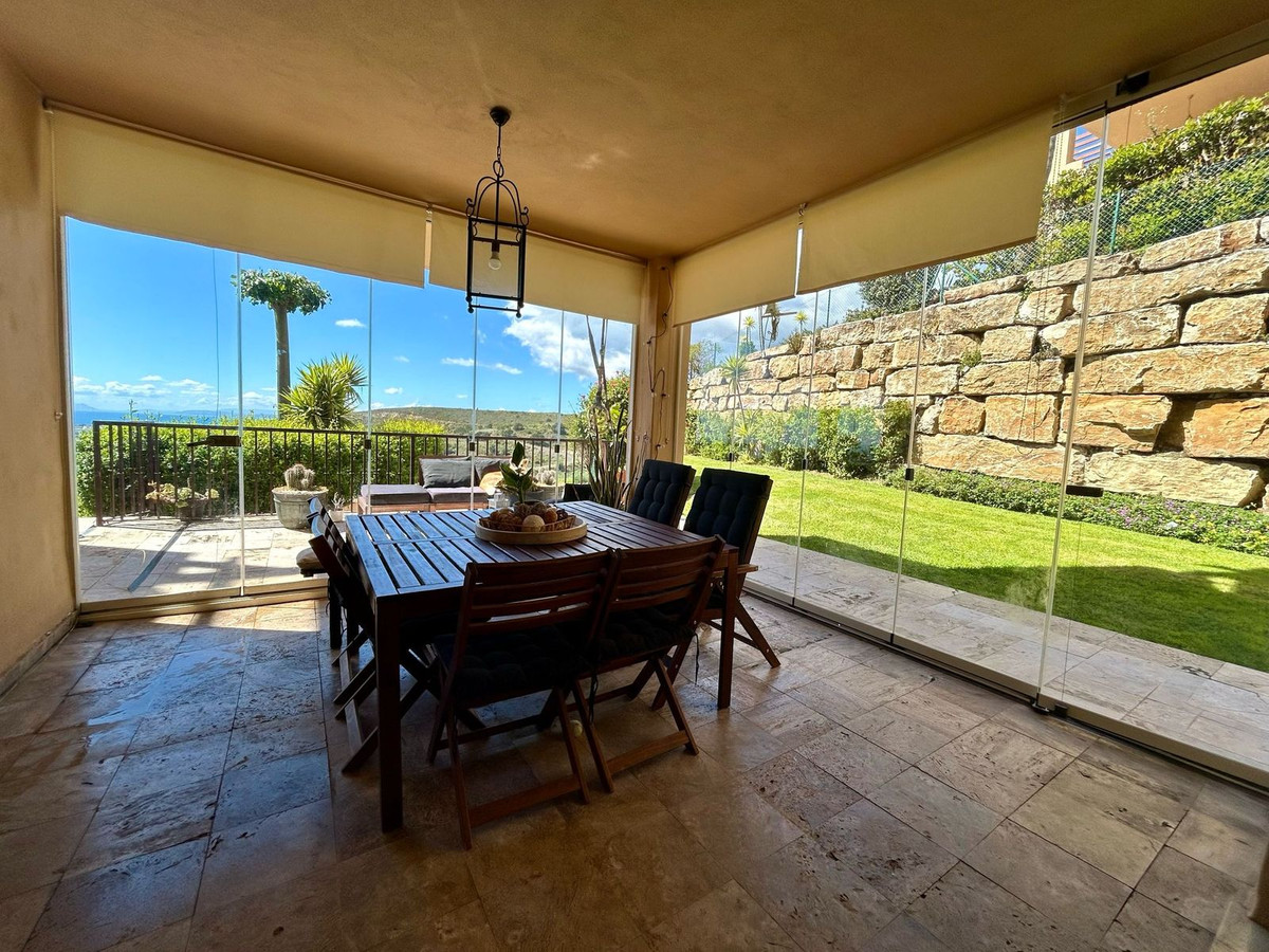 Incredible ground floor apartment for sale in Hacienda de Señorío de Cifuentes! This charming property offers spectacular views of the sea and Gibraltar. Enjoy the tranquility and beauty of the surroundings from its spacious terraces, connected to a large garden, both with sea views.