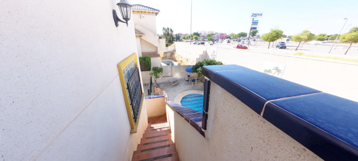 Key Features:Prime Location: Just a 2-minute walk from La Zenia Boulevard, surrounded by bustling commercial hubs, restaurants, and entertainment options. Conveniently located between the lively areas of Playa Flamenca and La Zenia, making it the perfect spot for dining, shopping, and enjoying all the attractions of the Orihuela Costa. Upon entering the villa via the external stairs, you're greeted by a spacious south-facing terrace that connects to the living and dining area through patio doors, flooding the space with natural light. An inviting open-plan layout that provides a bright and spacious environment for relaxation and entertaining. The kitchen is well-equipped to cater to daily needs. Two generously sized double bedrooms and a modern bathroom featuring both a bath and shower. Upper Level: Accessible via external stairs, the upper level boasts a private solarium, ideal for sunbathing, relaxation, or hosting social gatherings. An additional bedroom and bathroom on this floor provide extra comfort and privacy for guests.