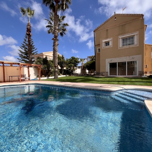 The property includes a fantastic **underbuild** which has been renovated into a fully self-contained 2-bedroom apartment on the ground floor. Living & Dining Area: Spacious and bright, perfect for extended family or visitors. Kitchen: A functional and modern kitchen area for added convenience. Bedrooms & Bathroom: Two large double bedrooms and a generous bathroom featuring a bath, shower, and WC.Outdoor Space: The villa offers a low-maintenance garden, perfect for enjoying the outdoors with ample seating areas to relax in the sun. A private pool adds to the property's appeal, offering a refreshing escape during the warm Spanish summers.This exceptional detached villa combines luxury, location, and flexibility, making it the perfect choice for anyone looking to enjoy the best of La Zenia and the surrounding area. Viewing is highly recommended to appreciate all the features this property has to offer.