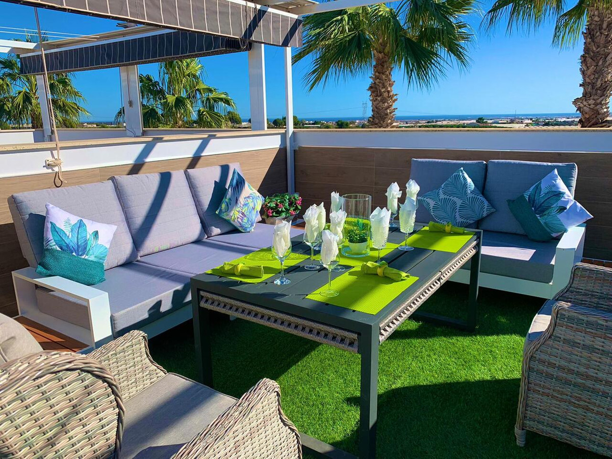 This beautiful penthouse apartment situated in a select gated community of Lo Romero Golf, is offered in excellent condition throughout with stunning views of the countryside and distant sea views. The property is situated just a short 5 minute drive from a variety of shops and local amenities in Pilar de la Horadada and only around 15 minutes drive to the lovely beaches of the Costa Blanca.This lovely property has 2 double bedrooms, a family bathroom as well as ensuite to the master bedroom. Open plan living area leading to a modern fitted kitchen. There is a small storage room, and a very spacious roof solarium, with fabulous 360 views of the surrounding area. There is private parking , and an inviting communal swimming pool and gardens. The property is offered fully furnished and in excellent condition.Contact our team for soonest viewing!
