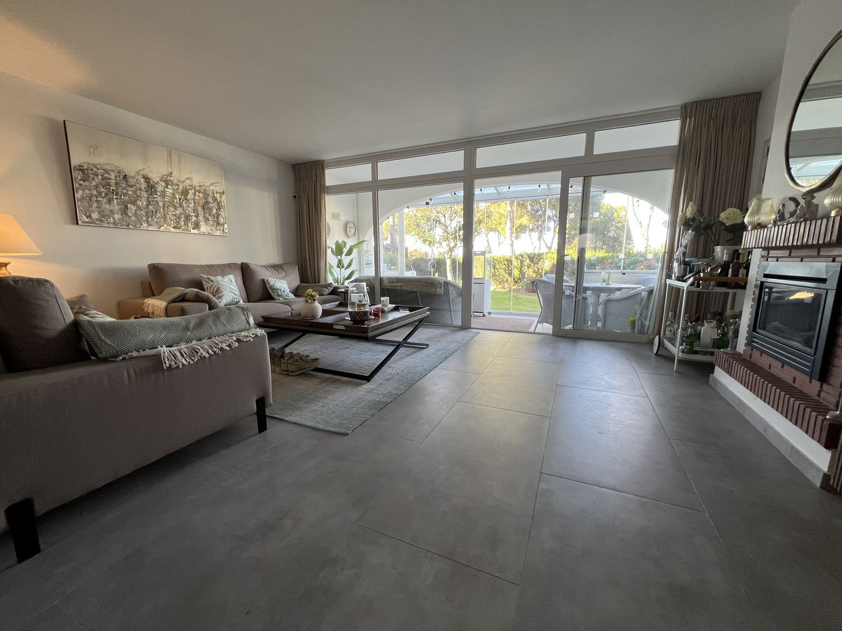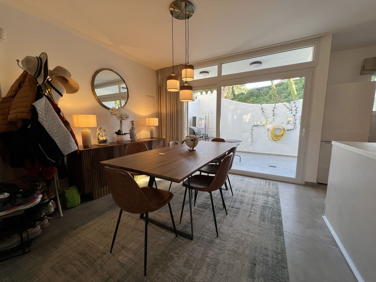 This gorgeous semi detached house in Miraflores will stun you with its tasteful interior updates and yet it still maintains it's Spanish feel. The ground floor welcomes you with a bright, large lounge, dining area and open plan kitchen. There is lots of natural light pouring in from both sides of the house plus you have the use of the private terrace on the east side, ideal for having breakfast in the morning sun. The lounge leads onto the westerly terrace which has been enclosed using glass curtains giving you even more living space and then access onto the garden area which is shared by only one other house. Other features on the ground floor include a brand new kitchen, gas living flame fireplace plus a guest cloakroom. Upstairs is where you will find the huge main bedroom with en-suite bathroom plus walk-in wardrobe. You also have two additional double bedrooms and a shared family bathroom. There is hot and cold air conditioning throughout the house plus owners have the use of the stunning communal swimming pools and you are only a stone's throw from the Miraflores tennis club. Owners have the use of two communal swimming pools and off-street parking. You will not be disappointed
