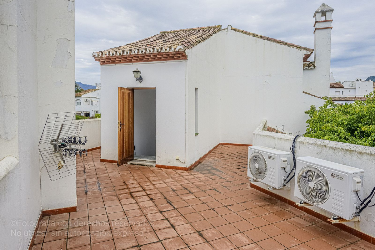I stueetagen er der også et gæstetoilet og et separat køkken med udsigt over haven. På øverste etage er der tre soveværelser og to badeværelser, hvoraf det ene er en suite. Og hvis vi fortsætter opad, når vi det private solarium, hvorfra vi kan nyde en betagende panoramaudsigt over havet og bjergene, det perfekte sted at slappe af ved solnedgang. Urbanisationen har en intern vej til køretøjer, så du kan parkere direkte ved hoveddøren.
