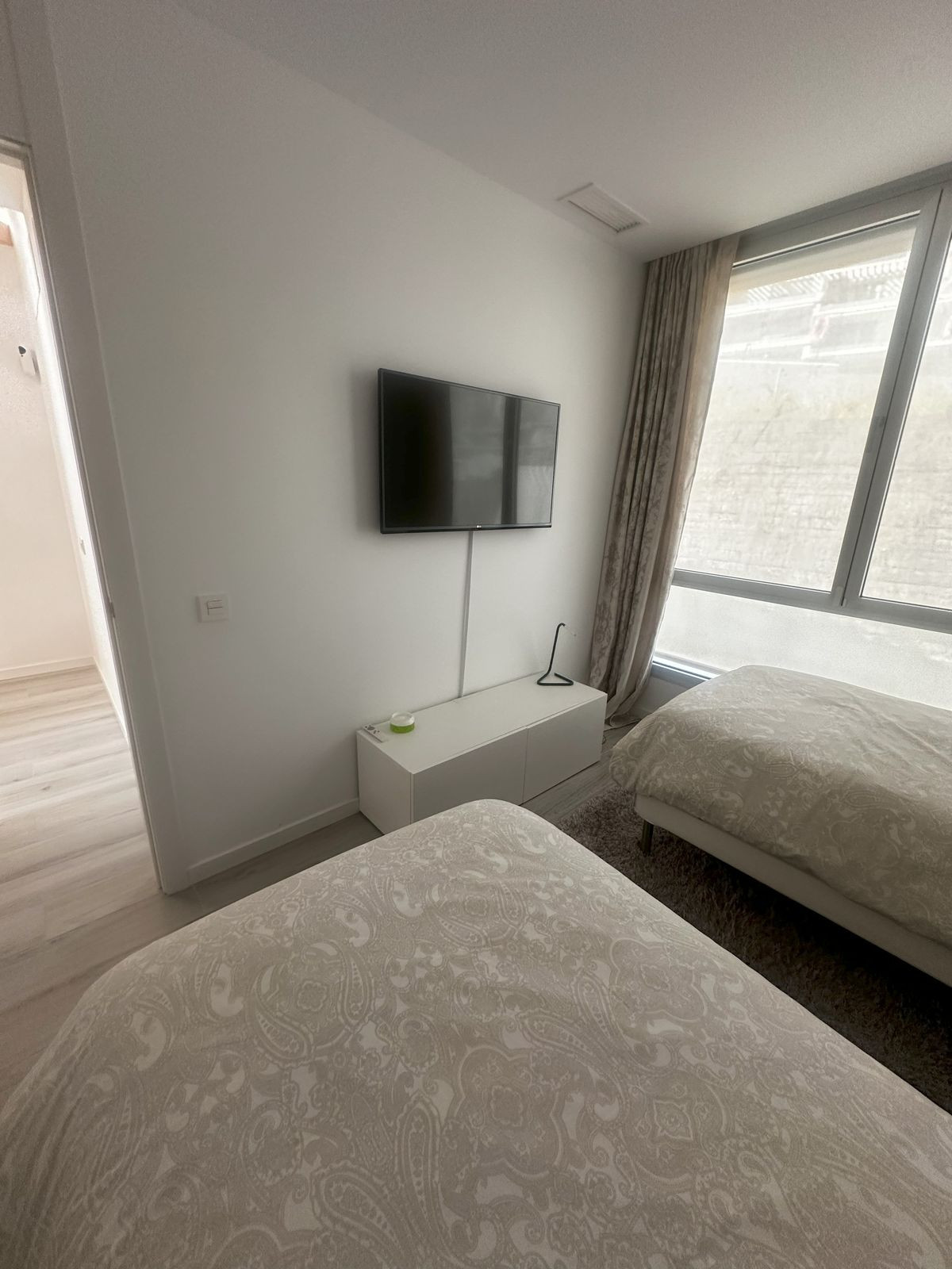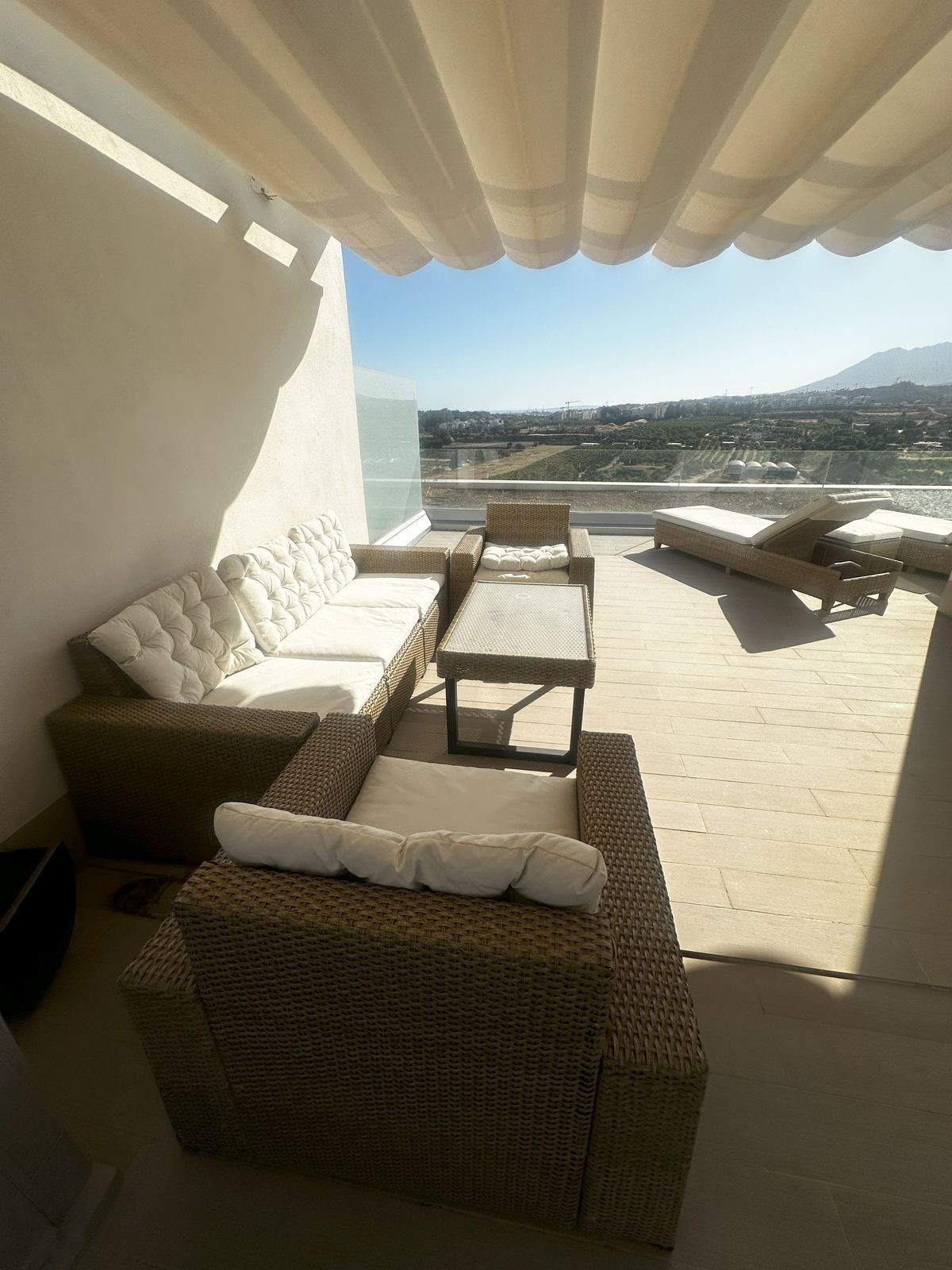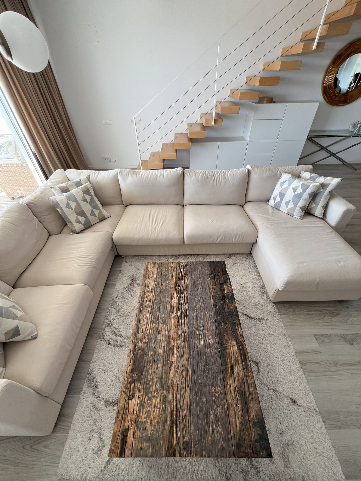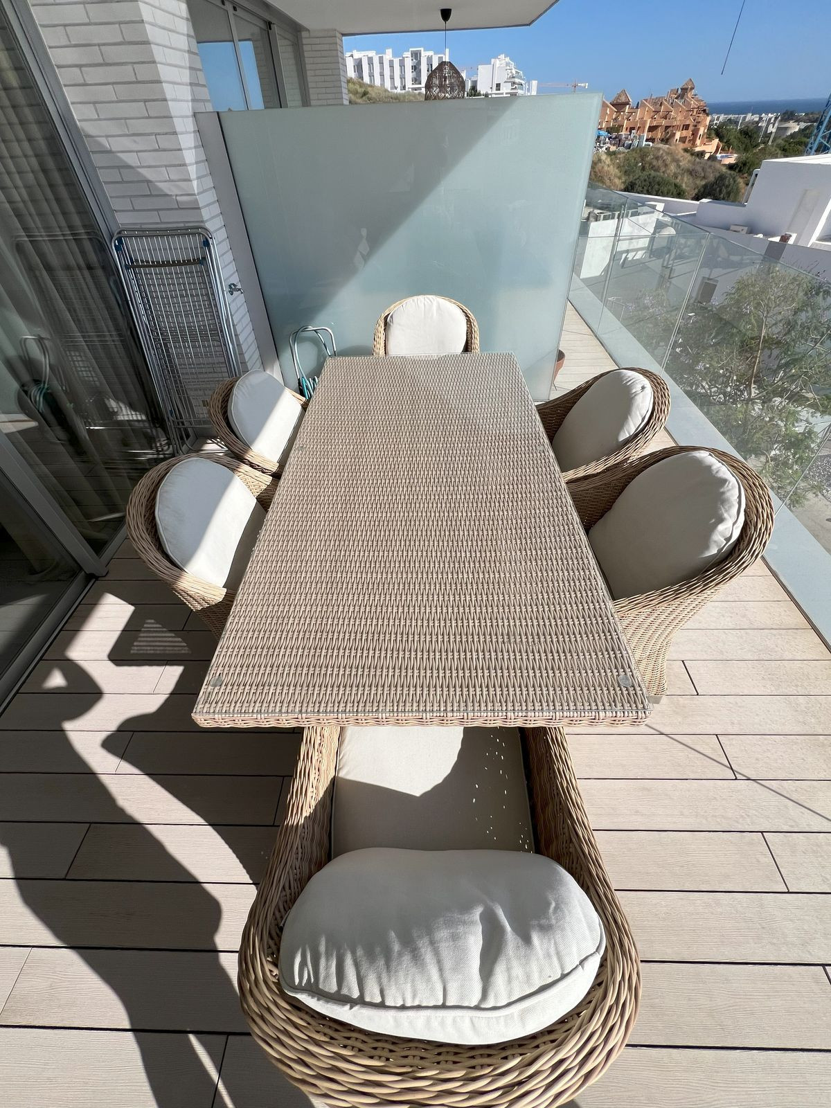 Enjoy a spacious **private terrace**, perfect for outdoor dining and relaxation. The fully equipped **contemporary kitchen** seamlessly blends into the living area, creating a stylish and functional space. The master bedroom boasts an **en-suite bathroom**, while the two additional bedrooms are generously sized.