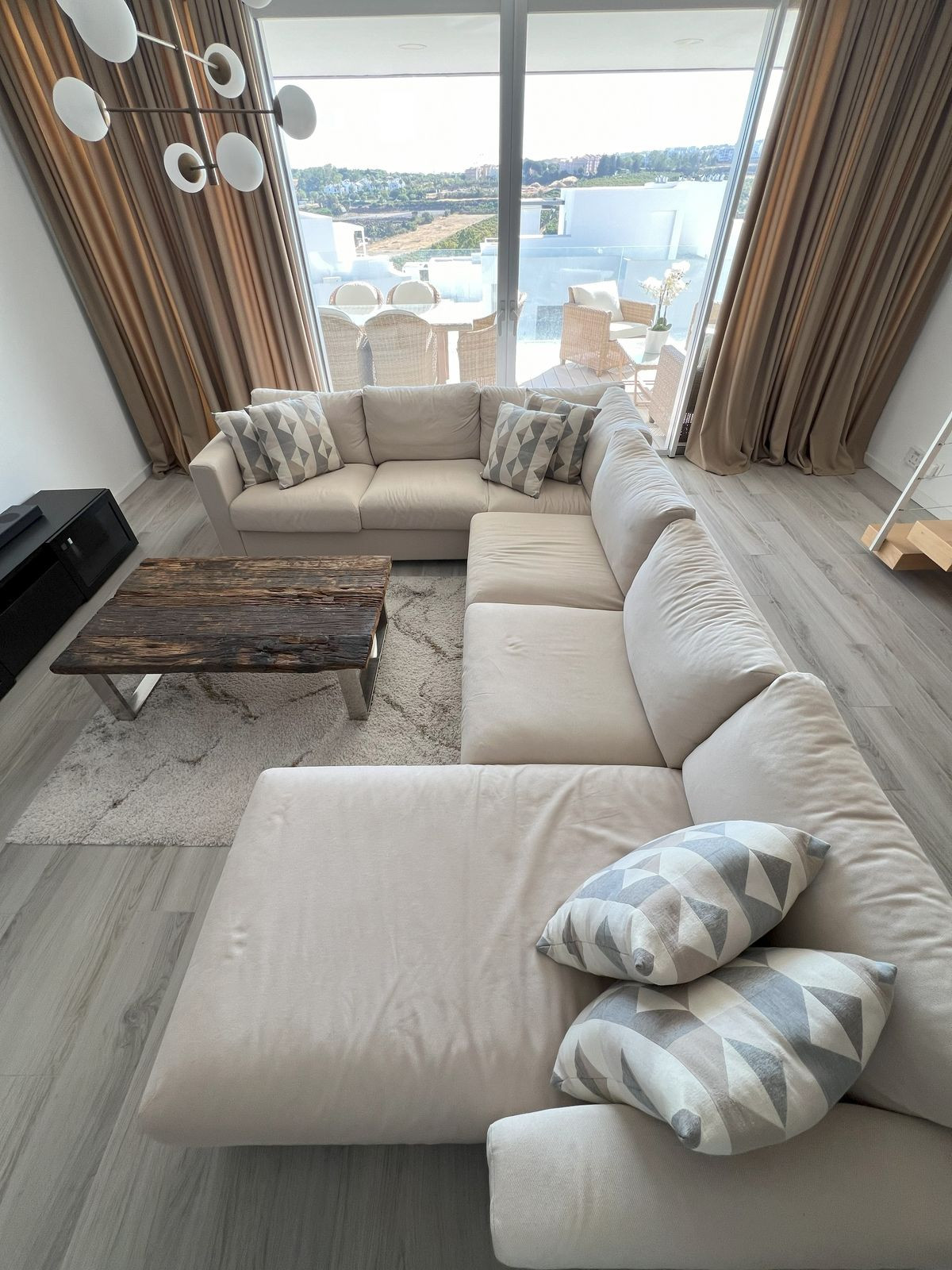 Discover this elegant 3-bedroom, 2-bathroom apartment in the sought-after **Oceana Gardens** community. Offering breathtaking **sea and mountain views**, this modern home features an open-plan living space with **floor-to-ceiling windows**, allowing for plenty of natural light.