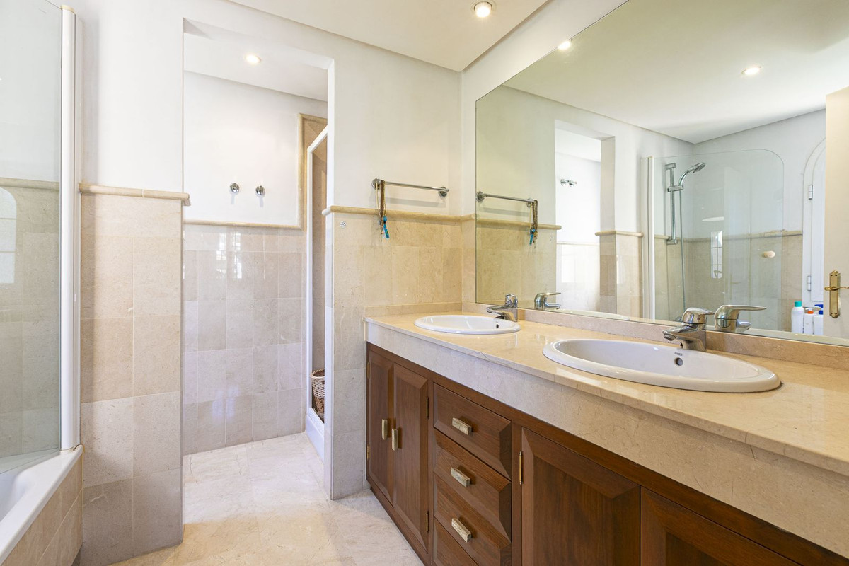 Going up to the first floor, you will discover two bright bedrooms, each with its own en-suite bathroom. The master bedroom features a luxurious Jacuzzi, offering a private space for relaxation and comfort.