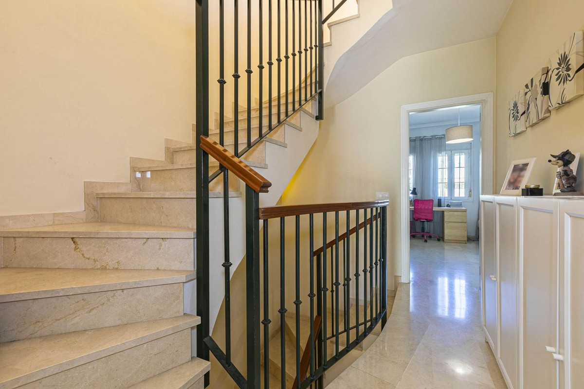 As you enter the ground floor, you are greeted by a cosy living-dining room, ideal for family gatherings and relaxing moments. A guest toilet is also located on this floor, providing comfort and functionality. The modern and fully equipped kitchen opens onto one of the two spacious terraces, perfect for outdoor dining and enjoying the Mediterranean climate.