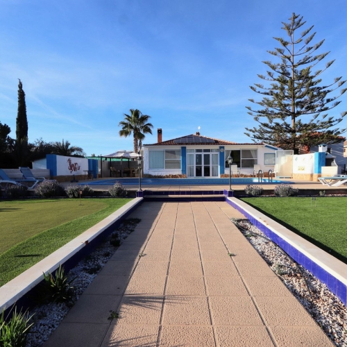 This Imposing, South Facing, Six Bedroom, Detached Villa in Callosa de Segura is located in a tranquil and picturesque setting, just a 5-minute drive from La Murada, with the towns of Cox and Callosa de Segura reachable within 10 minutes. The stunning coastline of the Costa Blanca South is approximately 30 minutes away, making this an ideal retreat that blends privacy with accessibility. Set on an expansive 12,831m² established plot, this remarkable 514m² villa is spread across three levels and boasts direct panoramic views over the surrounding citrus groves, mountains, and countryside. The impressive covered entrance terrace leads into a grand hallway with double-opening doors to a spacious living room, featuring a stunning fireplace, pre-installation for air conditioning and radiator. Three sets of double doors provide access to the outside, allowing for an abundance of natural light. The separate family-fitted kitchen offers ample space, while the adjoining utility room has direct outdoor access. The ground floor also includes four double bedrooms, all with built-in wardrobes, plus a single bedroom/office. The master suite benefits from a walk-in wardrobe and an en-suite shower room, while three additional shower rooms, one being en suite, provide convenience for family and guests. On the first floor, a second living area with air conditioning leads out to a partly covered terrace, perfect for enjoying the breathtaking views. This level also includes a double bedroom and a family bathroom. The under-build, accessible both internally and externally, features a garage, a pool room, storage, and two additional rooms, offering incredible versatility. Outside, the beautifully landscaped grounds include a recently refurbished (2024) 12 x 6 saltwater pool with an outdoor shower, a BBQ area, and an abundance of mature trees, including fig, orange, and pomegranate, as well as palm trees. A 180,000-litre irrigation system ensures the lush surroundings remain vibrant, while a water softener system and full insulation add to the villa's practicality and comfort. This extraordinary property is a rare opportunity to own a luxurious countryside escape in the heart of the Costa Blanca South!\n