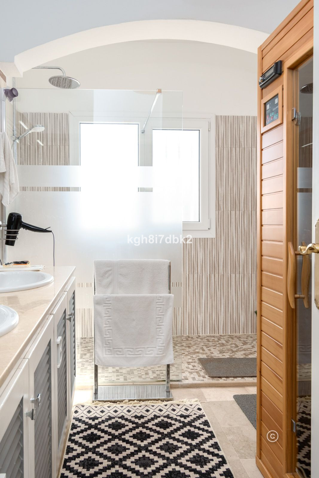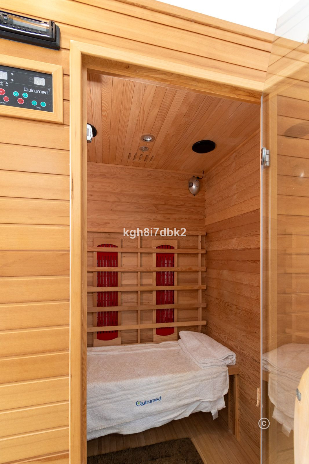 Upper level: one ensuite with bath and sauna + two bed rooms with access to large terrace and one bath room.