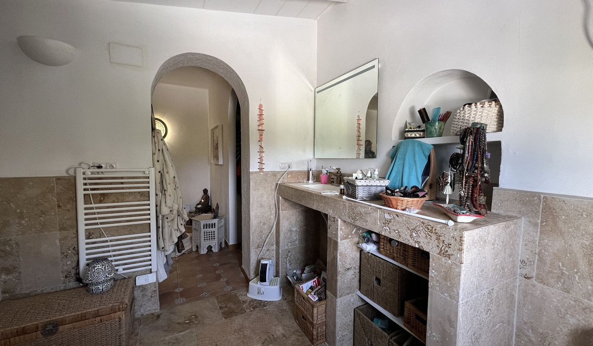 At the entrance of the property, a covered parking area provides convenient parking, while two fully equipped caravans offer additional living space, each with a kitchen, dining area, bedroom, bathroom, and private terrace, perfect for welcoming family and friends. The more than 6,000m² of fertile land is planted with numerous fruit trees, including orange, lemon, and loquat, and is divided into two sections by a path. The second plot is planted with beautiful olive trees. For added convenience, the property is equipped with town water, canal water, and a shared water well, ensuring ample irrigation. Several storage areas complete the property.