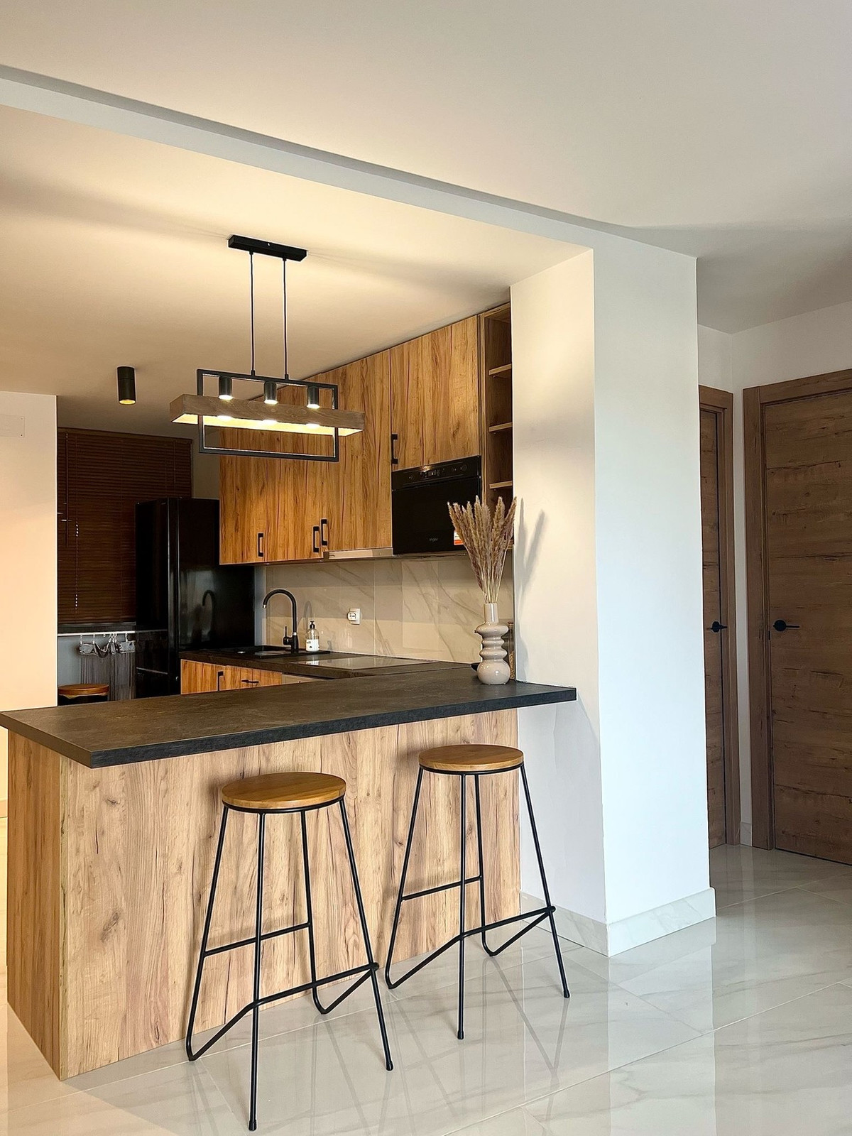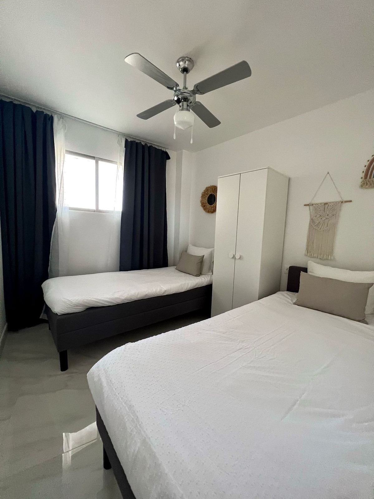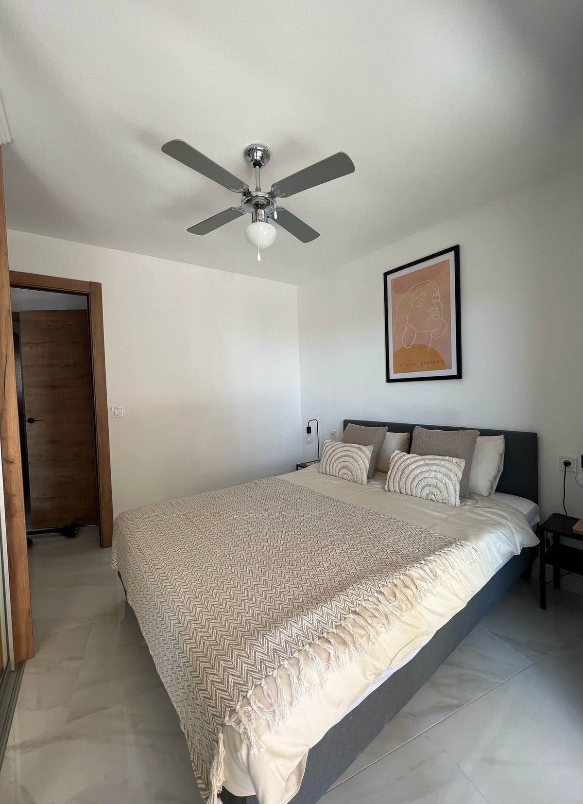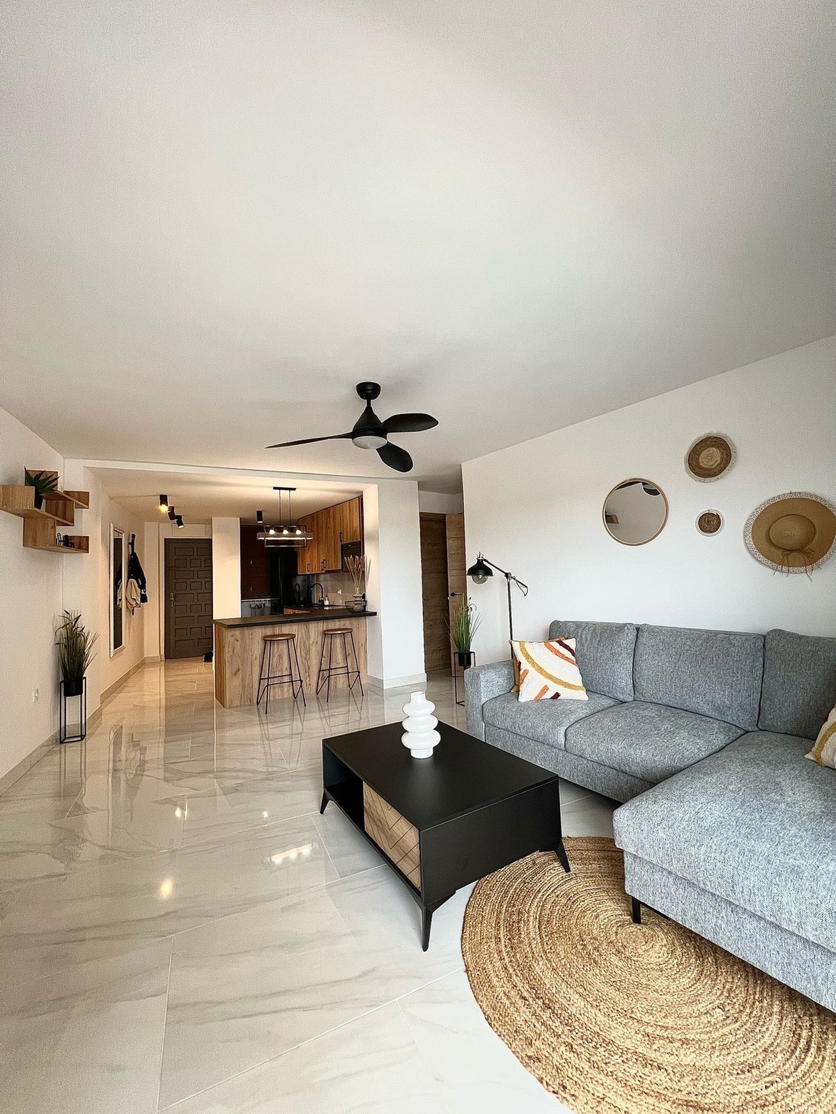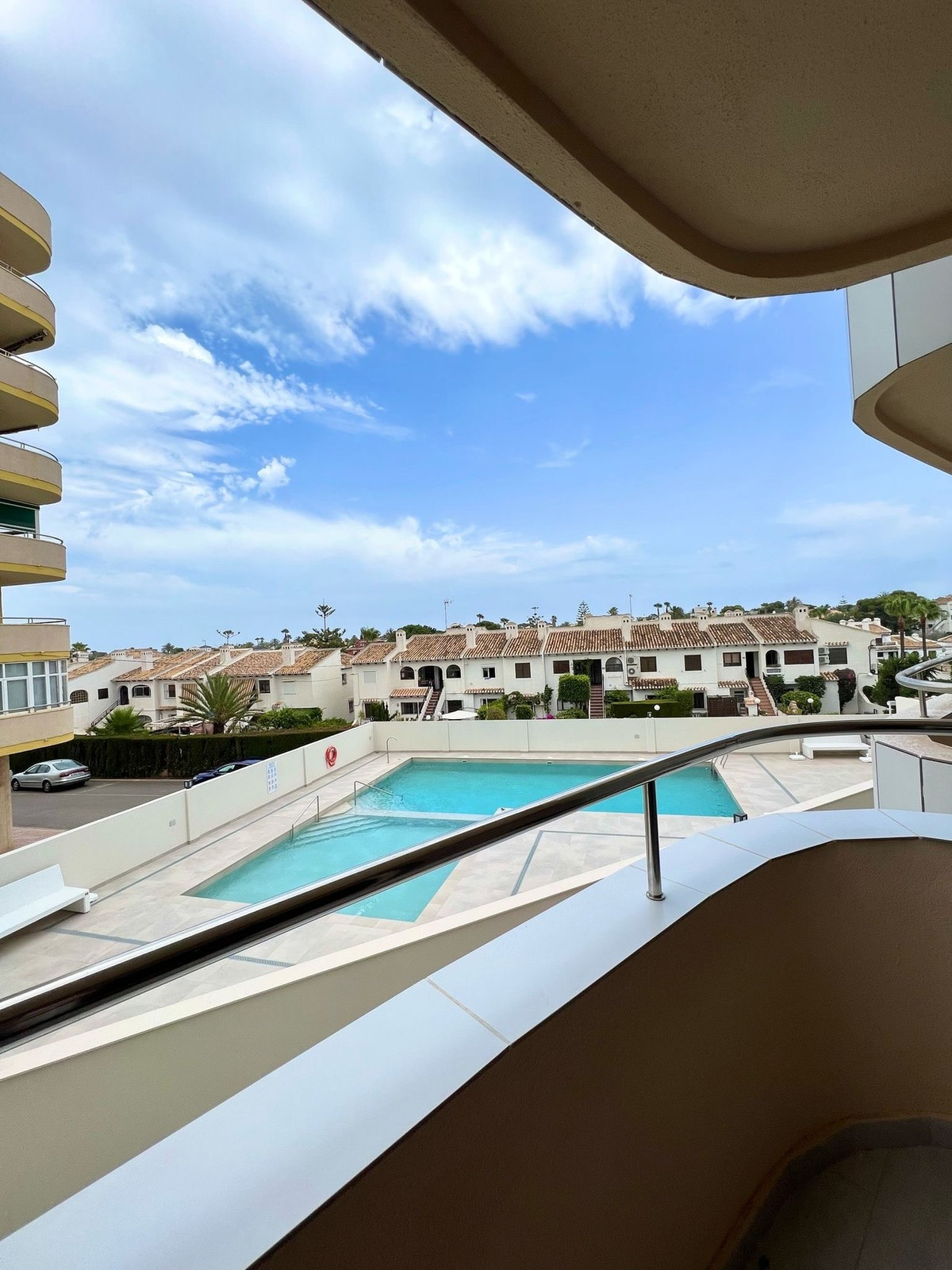 The property will be sold fully furnished, has been completely refurbished, and consists of a bright spacious living/dining room with direct access to the terrace overlooking the communal green area with swimming pool, a fully equipped open plan kitchen, air conditioning (hot/cold), two double bedrooms, one bathroom, and a large terrace.