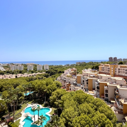Fantastic penthouse with SEA VIEWS in Cabo Roig, 2 bedrooms, 1 bathroom, oriented to the southeast, good for living and an excellent investment opportunity. Located in the Aguamarina residence, with high rental demand. Fully furnished and in excellent condition, the penthouse consists of a living/dining room with air conditioning and access to a sunny terrace, an equipped kitchen and 2 bedrooms with fitted wardrobes. One of the bedrooms has direct access to its own cozy terrace. The apartment is sold fully furnished. A spacious private solarium overlooking the sea, where the sun shines all day. The total area of the apartment is 110m2.