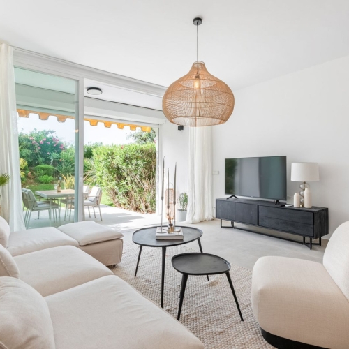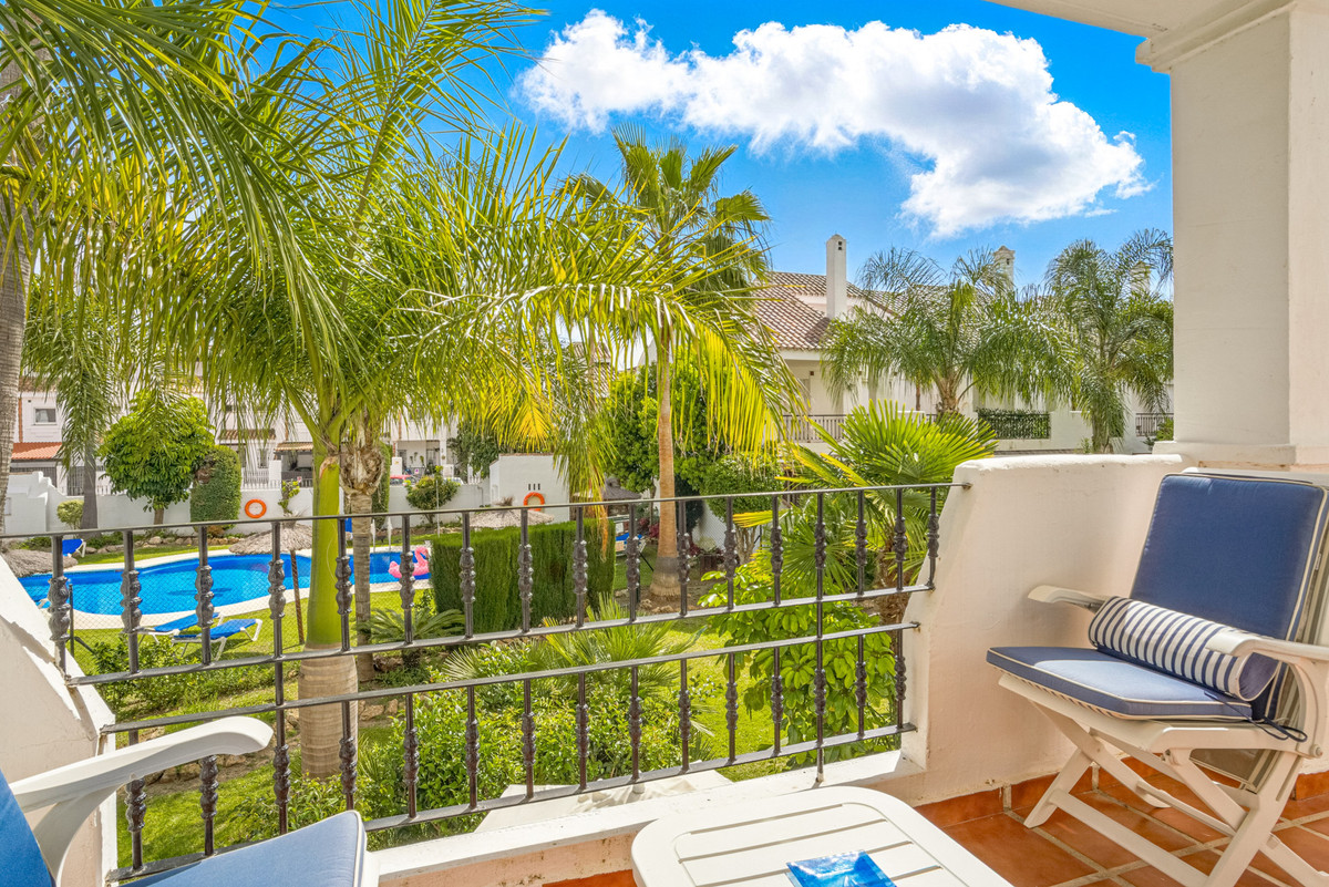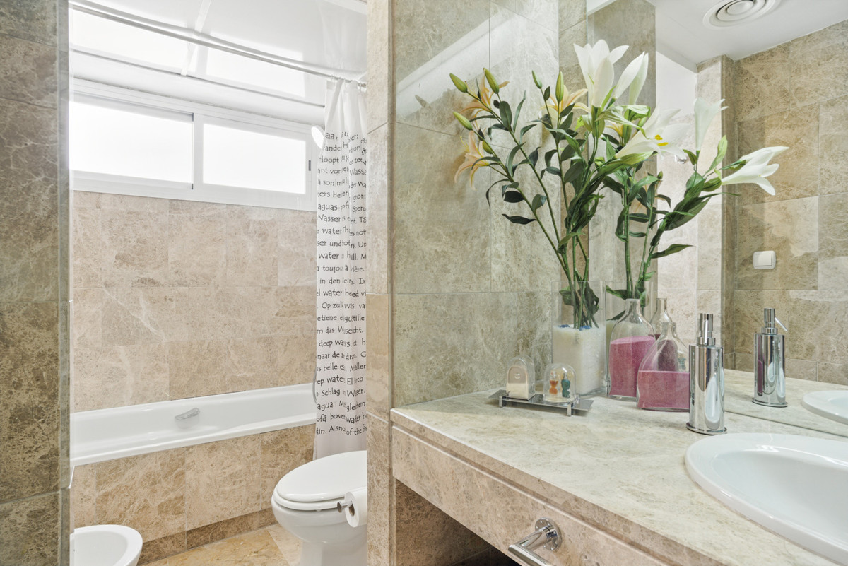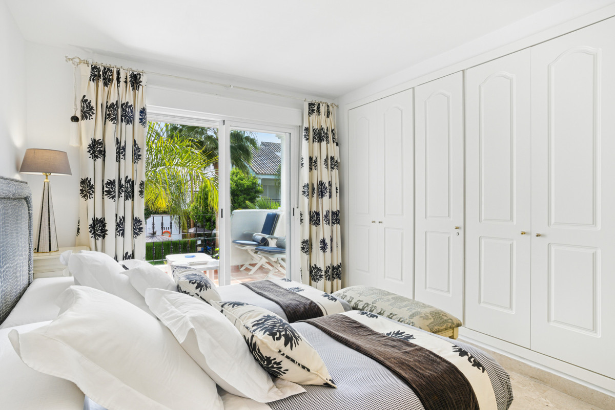 Dette rummelige dobbelthus ligger i det prestigefyldte samfund i Los Naranjos de Marbella og tilbyder en privilegeret indstilling med anlagte haver, fælles pool og et Mercadona supermarked. Inden for gåafstand af Puerto Banus og blot et par minutters kørsel fra centrum af Marbella, dette hus kombinerer komfort og eksklusivitet. Huset har en fremragende øst-vestlig orientering, der giver naturligt lys hele dagen, og byder på en betagende udsigt over poolen, haver og bjerge. I stueetagen finder vi et rummeligt og lyst køkken med adgang til bryggeren. Den rummelige stue, med store vinduer, åbner til en charmerende terrasse ideel til at nyde middelhavsklima. På første sal er master soveværelse en suite med privat terrasse, sammen med to gæsteværelser, der deler et badeværelse. Et af disse soveværelser har også adgang til terrassen. Den anden sal har et solarium, perfekt til at slappe af og nyde panoramaudsigten. Derudover er der mulighed for at oprette et ekstra soveværelse ved blot at fjerne en partition. Blandt dens funktioner er de indbyggede garderobeskabe, kolde / varme aircondition, marmor gulve og en udendørs garage plads inde i ejendommen. I modsætning til mange byhuse deler den kun en væg med naboen og nyder dermed større privatliv. En unik mulighed for at leve i et eksklusivt miljø, med alle de faciliteter lige ved hånden.