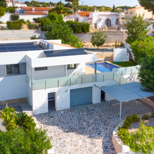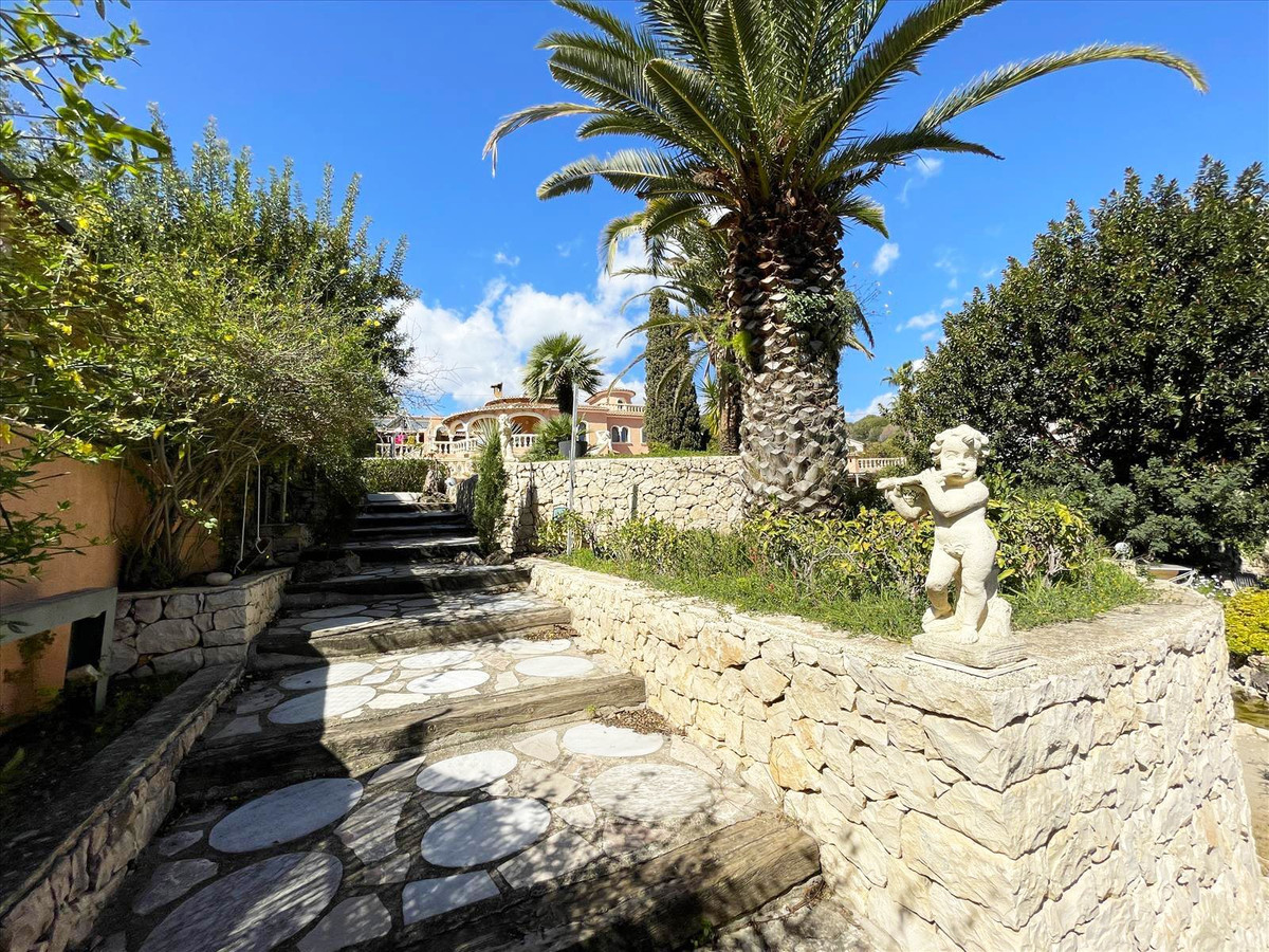 This 400 m2 villa is located on a large 1,850 m2 plot, facing southeast, just 450 m from the beautiful coves of Benissa, 600 m from the Aldi supermarket, 5.5 km from Calpe, 8 km from Moraira, and 76 km from Alicante airport.