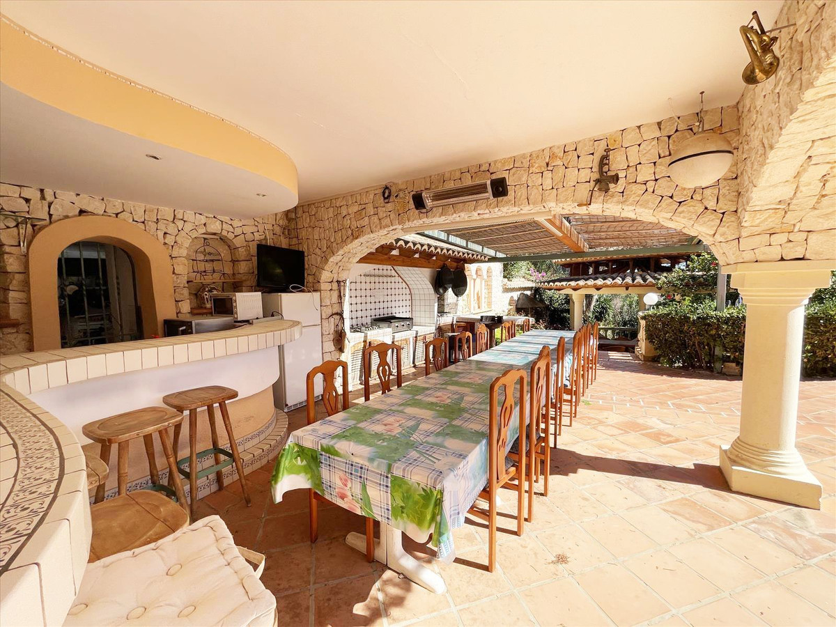 The plot, which boasts sea views from several points, consists of a private pool, a rooftop terrace with a jacuzzi, several terrace and garden areas spread over several levels, a beautiful freshwater lake, a bar, a summer kitchen, a second summer kitchen with a paella pan and barbecue, a banquet area, a covered marquee, a sauna with a shower and relaxation area, parking for 3 vehicles, and a garage for one vehicle.