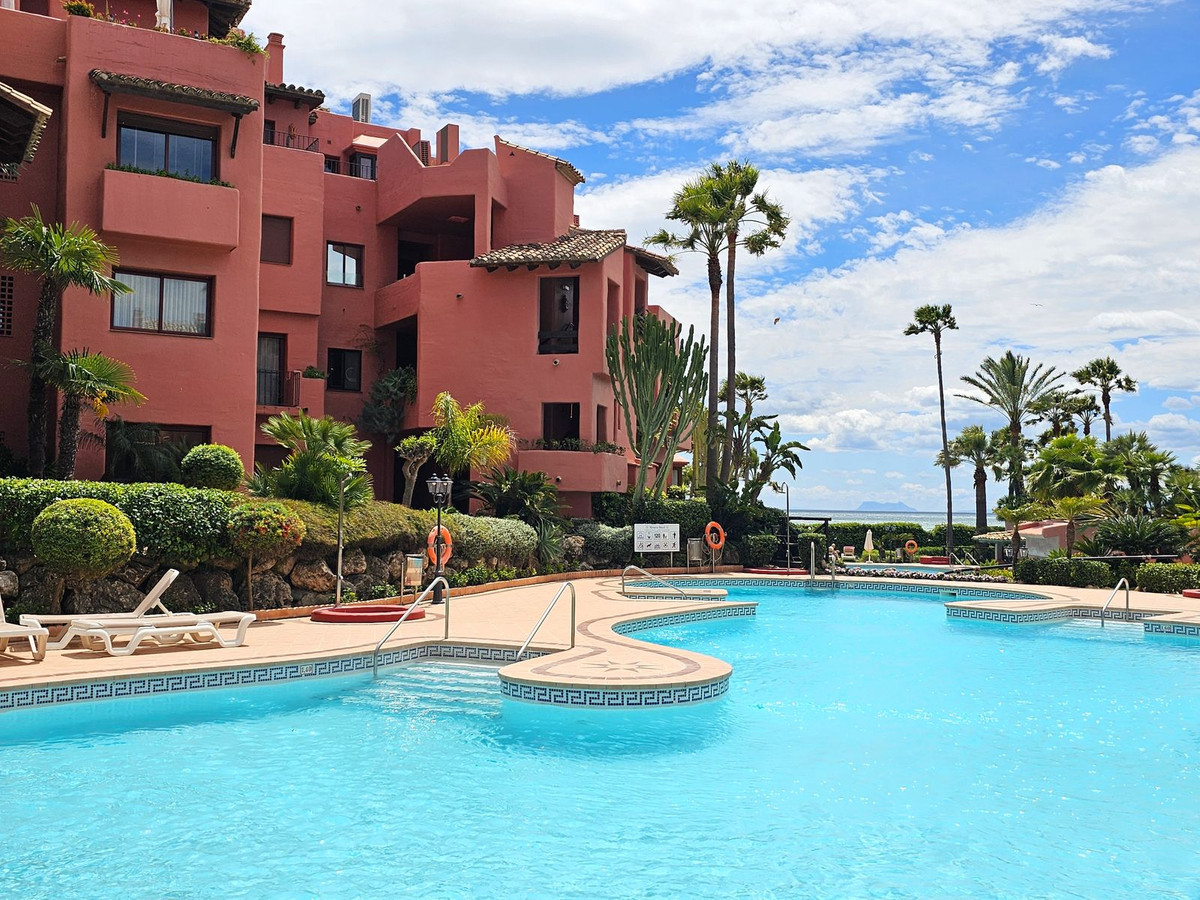 Hvis du er ude efter en afslappet og luksuriøs livsstil ved havet, kan denne totalrenoverede lejlighed ved stranden være lige noget for dig. Beliggende i et af Esteponas mest eftertragtede områder – New Golden Mile – blander dette sted moderne komfort med et strejf af elegance, lige ved Middelhavet.