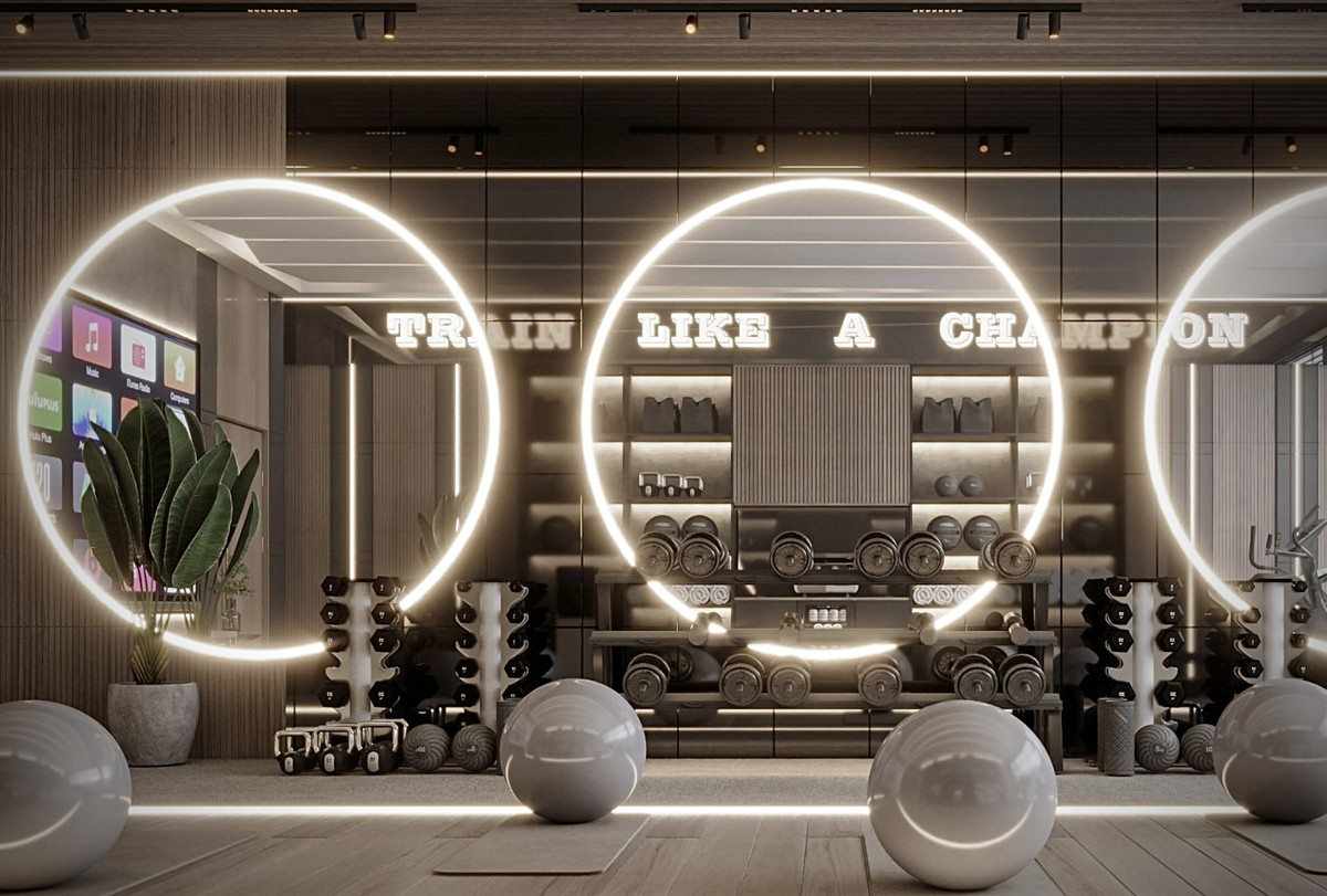 Privat fitnessrum og hjemmebiograf med topmoderne teknologi
