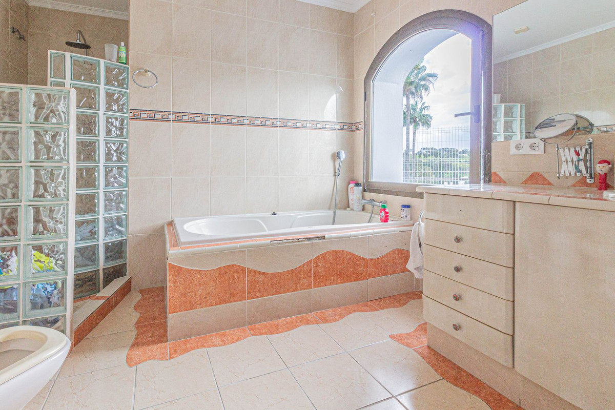 On the ground floor, the villa offers an independent guest house with its own kitchen, bathroom, two bedrooms and ample storage space. This area, full of natural light, connects directly with the garden and the swimming pool, guaranteeing privacy and comfort for your guests or family members. In addition, the villa has a carport at the entrance and a large private garage, offering you the comfort and security you deserve.