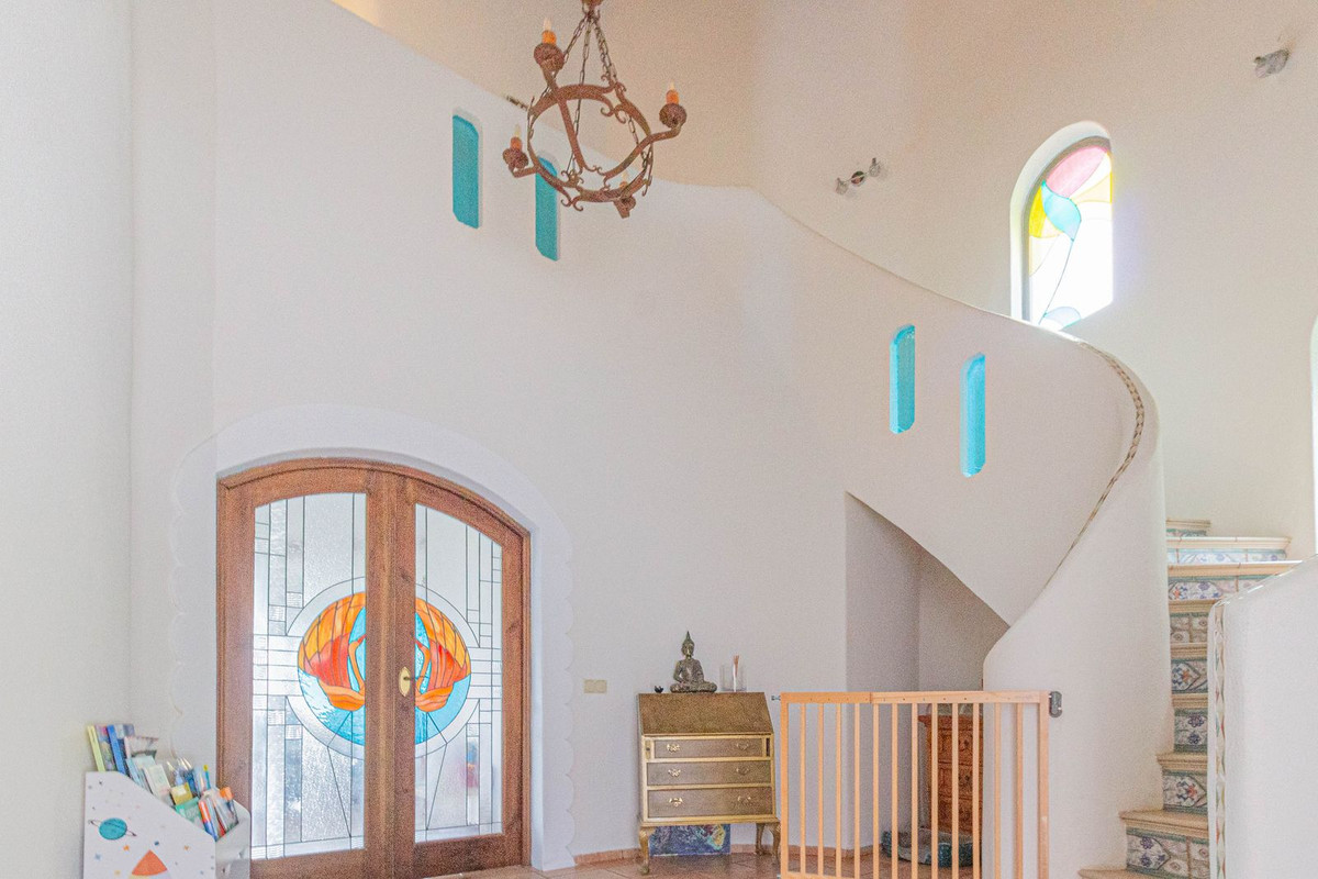 As soon as you enter, you will be greeted by an elegant hall with stained glass windows that leads to a bright living room, full of possibilities. From here, you will be able to access a large terrace that connects directly to a beautiful and spacious garden, with landscaped areas that invite you to relax and a barbecue area perfect for outdoor leisure time. Its private swimming pool becomes the centre of summer activities, offering you the possibility to relax in an exclusive atmosphere. Imagine relaxing in this space while enjoying the tranquillity and natural beauty that surrounds you.