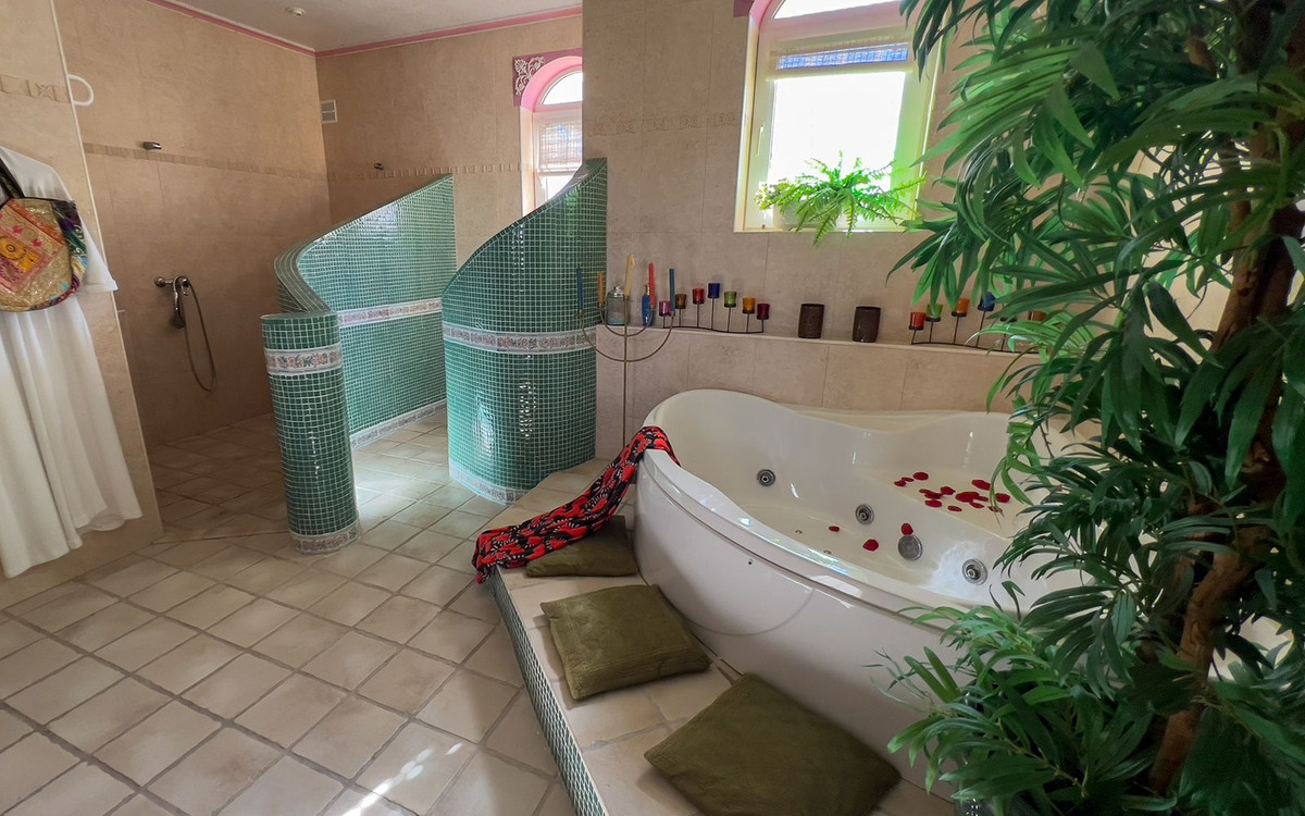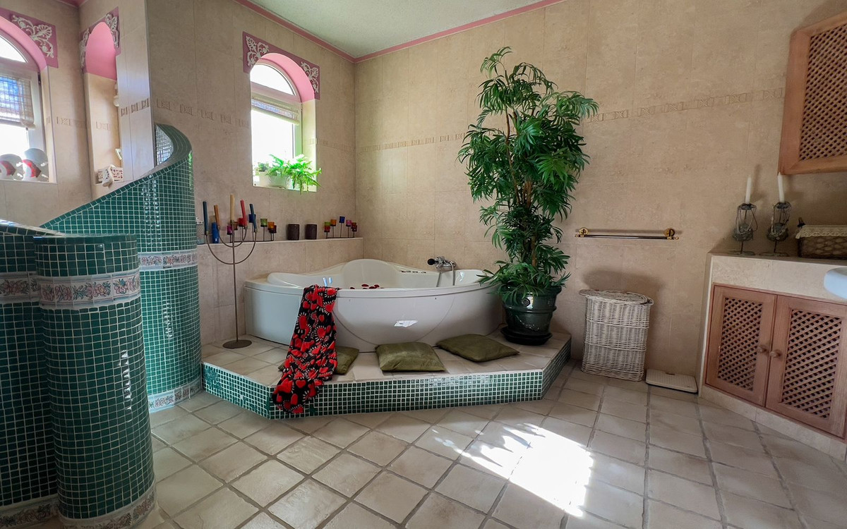 The house has 6 bedrooms, including the majestic Royal Suite inspired by the most luxurious Arab palaces on the first floor, all with en-suite bathrooms for maximum comfort.