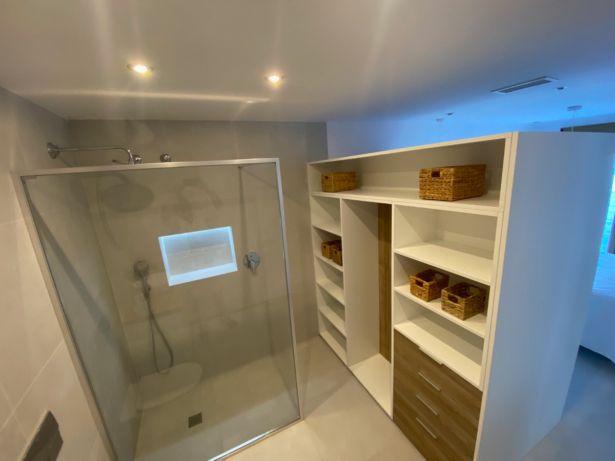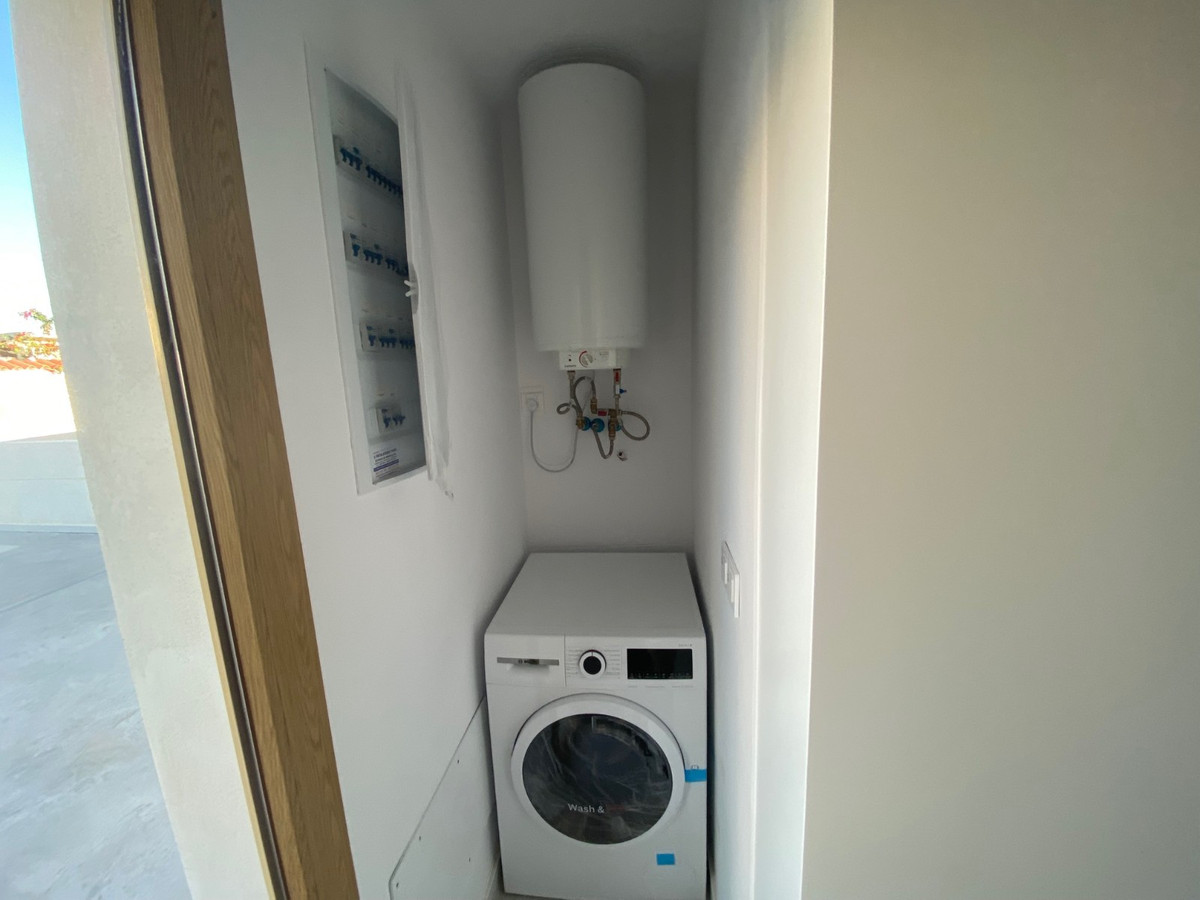 Living area and kitchen The spacious living area is tastefully decorated and flows seamlessly into the open kitchen. This modern kitchen is fully equipped with high-quality appliances and offers direct access to a covered terrace, allowing indoor and outdoor living to blend effortlessly.