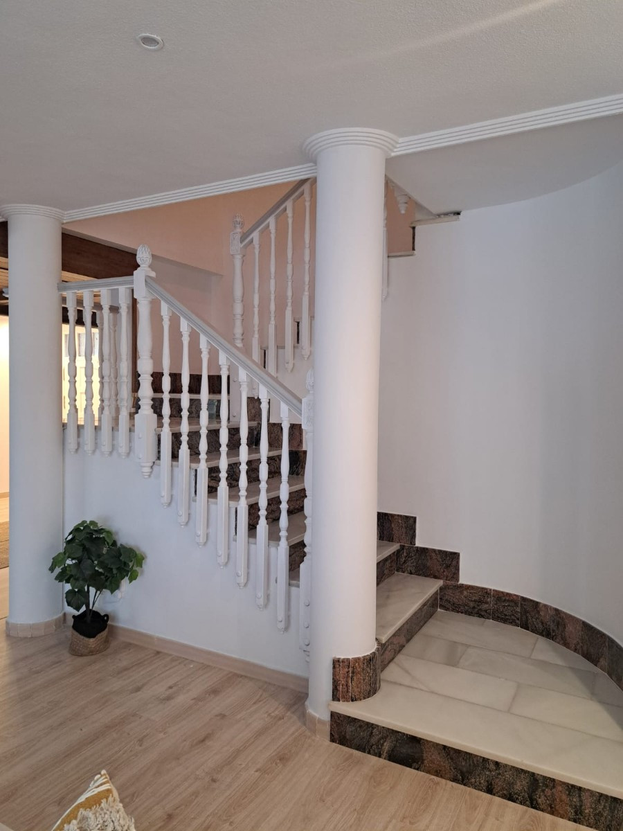 Bedrooms : 5 spacious bedrooms, each with large windows letting in plenty of natural light. The bedrooms are tastefully decorated in a rustic style. Bathrooms : 3 modern bathrooms, equipped with high-quality materials. Each bathroom has a walk-in shower, sink with storage space and a toilet. One of the bathrooms is ensuite to the master bedroom. Kitchen : A closed kitchen, fully equipped with modern appliances such as a stove, oven, refrigerator, dishwasher and microwave. The kitchen has plenty of work space and storage, and a cozy dining area for informal meals.