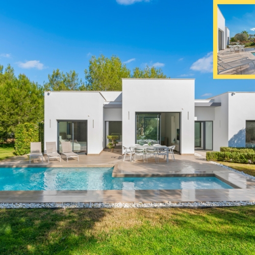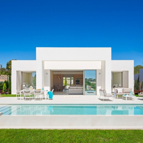 This luxury villa is located at Las Colinas Golf & Country resort located near Campoamor and the village of San Miguel de Salinas, 70 km south of Alicante.