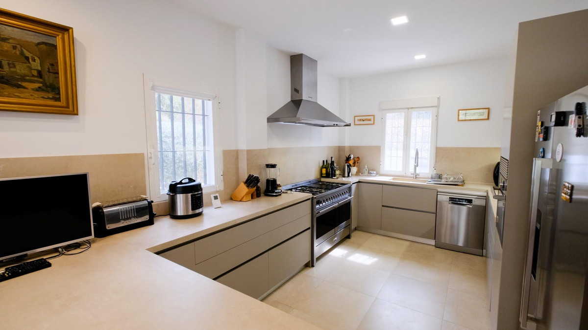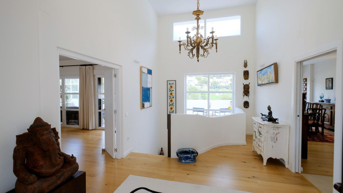This renovated property offers the opportunity to live in a modern, high quality home in one of the best areas of Altea la Vella. The open and bright design maximises the natural light and climate of Altea. The light oak flooring unifies the space.The elegant hallway, with views of the golf course and the Sierra Bernia mountain range, leads to a 90 m² living room, perfect for enjoying around a stone fireplace. From here there is access to a large terrace overlooking the golf course.The functional and aesthetically pleasing designer kitchen features high-end appliances such as a Smeg induction cooker and a water purification system.The dining room, ideal for entertaining guests, is perfectly integrated into the same area. The wrought iron staircase leads to the ground floor, where there are 4 bedrooms with fitted wardrobes and 3 bathrooms, including a large master bedroom with dressing room. High quality fixtures and fittings, such as Mapini bathroom units, stand out in every detail.From the bedrooms there is access to a covered terrace with views over the golf course and the Sierra Bernia mountain range.Outside, the low-maintenance Mediterranean garden includes an automatic irrigation system. The salt water swimming pool, with pre-installation for heating, is surrounded by a large terrace leading to an enclosable summer kitchen.The property has direct access to the golf, a clubhouse with restaurant and wellness area. It also has a garage for two cars and a large storage room.With air conditioning, gas central heating, solar panels, battery systems, mosquito nets, alarm connected to the police, cable TV and fibre internet, this house guarantees maximum comfort.Only minutes away from the beaches, luxury harbours and the promenade, Altea is famous for its blue domed church, its historic centre full of restaurants, cafes, craft shops and artists who are inspired by the beauty of the place.