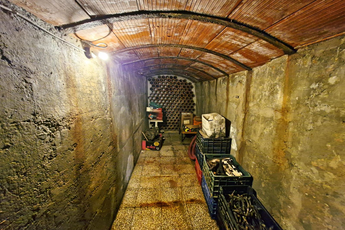 The ground floor features a huge private garage with space for up to three vehicles, as well as a wine cellar. From the entrance, a staircase leads up to the main living areas.