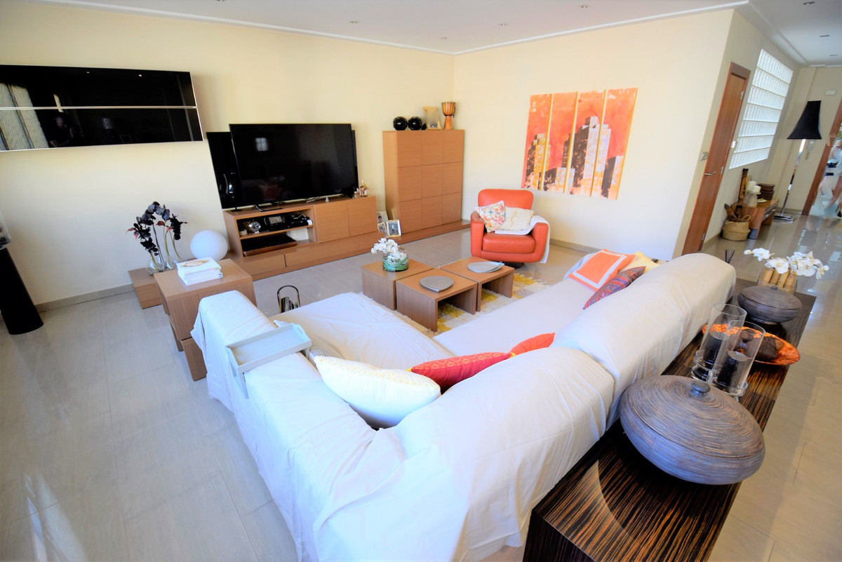 This bright and spacious villa of about 280m2 is composed of 4 bedrooms, 3 bathrooms, 1 toilet, 1 large living room, kitchen-dining room, solarium, private garage with space for 4 cars, 1 storage room.