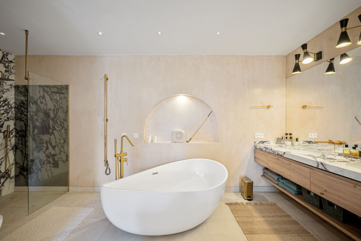 Nestled in the prestigious residential area of Marbella's Golden Mile, this beautifully newly renovated Andalusian-style townhouse seamlessly blends traditional architecture with contemporary Nordic interiors, offering a unique combination of charm, comfort and functionality.