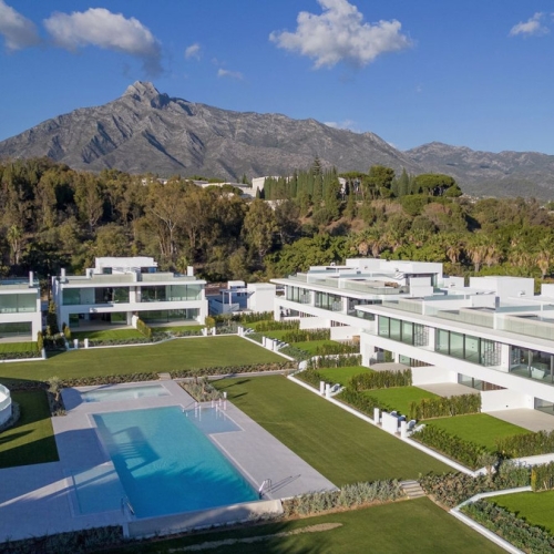 The complex is situated within the prestigious Marbella Hill Club, known for its exclusivity and tranquility.