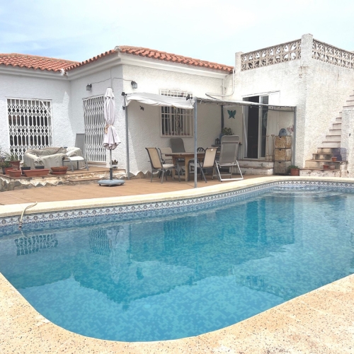 Located in the sought-after area of Bello Horizonte in La Nucia, just outside Altea, this charming family villa is the perfect place to live all year round. The property is distributed over two floors. The main access leads to a large integrated garage and a sunny porch, from which steps lead down to the garden, where you will find orange trees, mature lemon trees and beautiful palm trees.