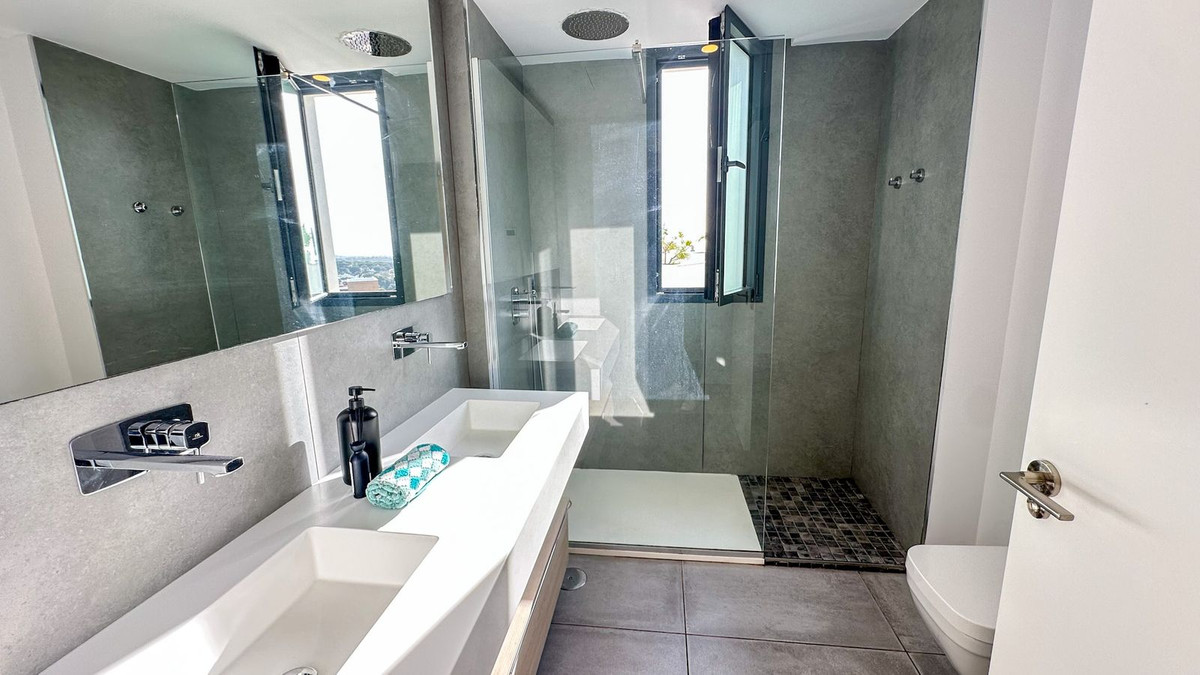 Located in a prestigious gated community in Artola Alta, this elegant south-facing corner duplex combines high-end design with cutting-edge features, offering a refined lifestyle surrounded by nature and panoramic sea views from the community areas.