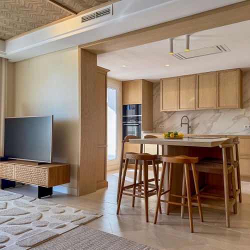 Luxury renovation in Nueva Andalucia. Top quality refurbishment with underfloor heating in the bathrooms and modern fire place. In la Maestranza, a closed development with 24 hours security, very well maintained gardens and green areas with 2 pools (one of them heated). Lovely mountain views with a built in electric BBQ for alfresco dining.The most popular shops and restaurants on your doorstep and only 15 minutes walk to Puerto Banus and the beach. It sold fully furnished so bring your suitcases and move in. Garage space is included in the price.
