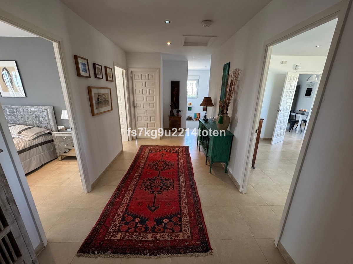 The lower floor offers even more space, with three additional double bedrooms and a family shower room. One of these bedrooms features an en-suite shower room and could serve as a primary suite. This level also includes a large room that is used as a second television room.  Alongside the door that leads out to the swimming pool is a second kitchen, fully equipped.  With the layout of this beautiful home it offers the potential to be divided into 2 self-contained living areas, making it perfect for guests, rentals or extended family.