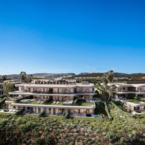 ● Penthouses: De har en stor forterrasse og et privat solarium med pool, udendørs køkken og pergolaområde, hvilket gør disse boliger til en unik mulighed for dem, der søger en forhøjet livsstil.