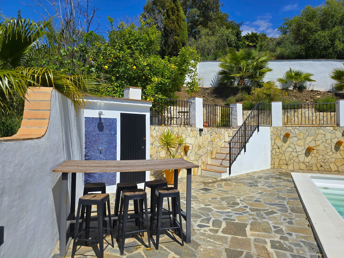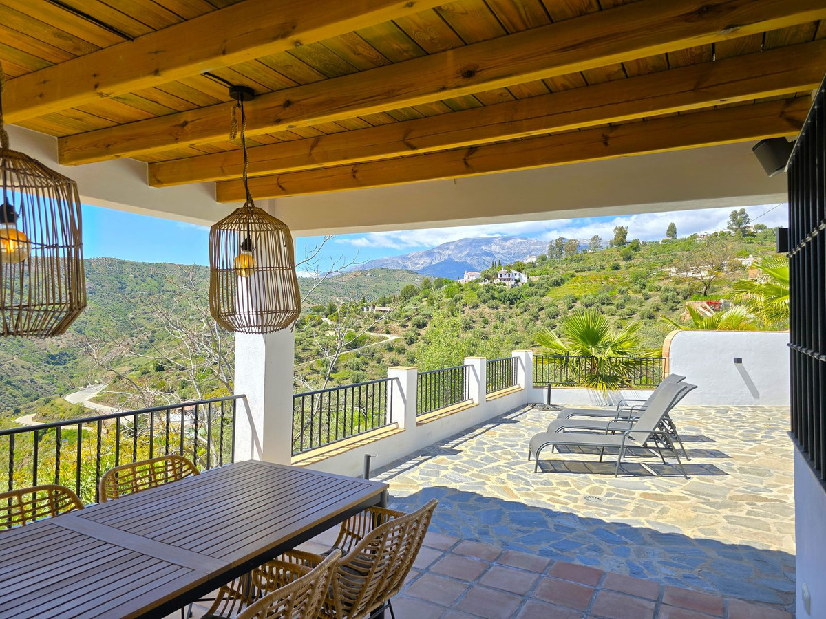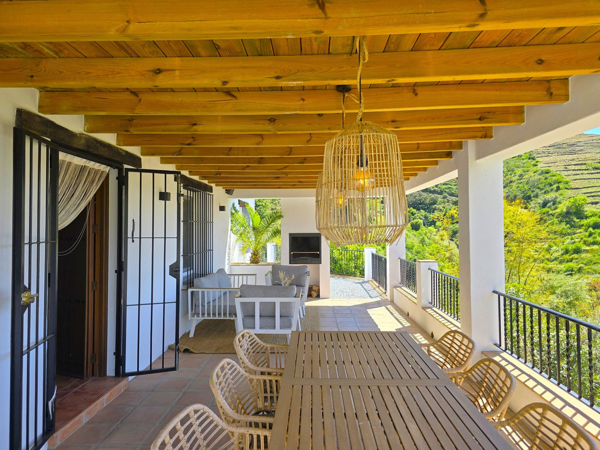 Beliggende i det fredelige andalusiske landskab og mindre end 10 minutters kørsel fra de smukke hvidkalkede landsbyer Cómpeta og Árchez, tilbyder denne enestående landejendom den perfekte blanding af ro, komfort og naturlig skønhed. Omgivet af bølgende bakker, olivenlunde og en flot udsigt over Sierra Tejeda-bjergkæden, er dette et ideelt tilflugtssted for alle, der søger en fredfyldt livsstil med nem adgang til landsbyens faciliteter, vandrestier og Middelhavskysten.