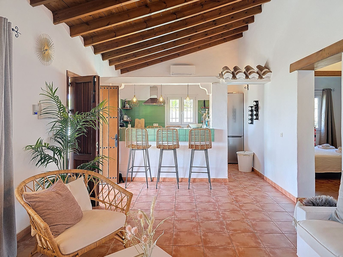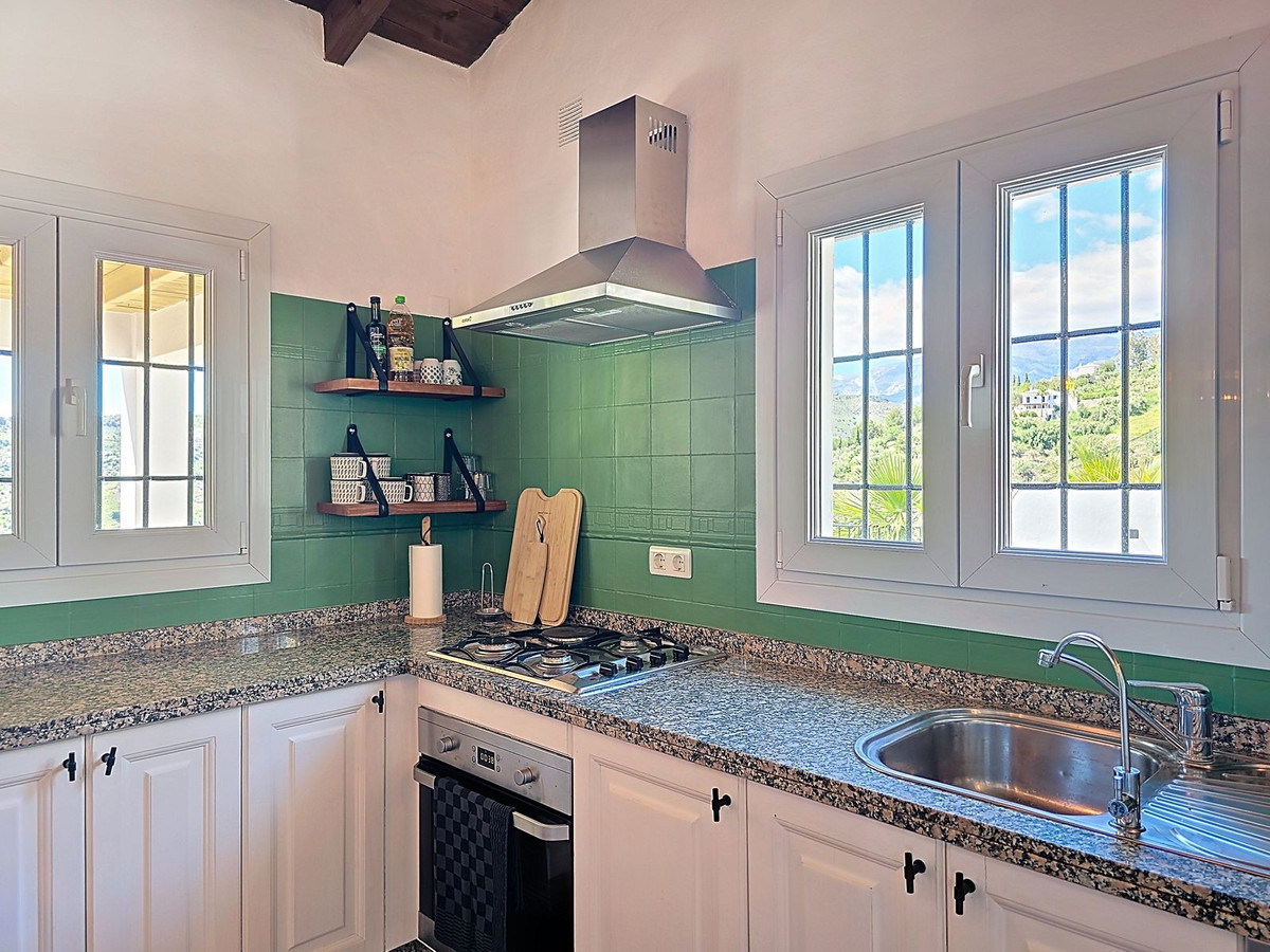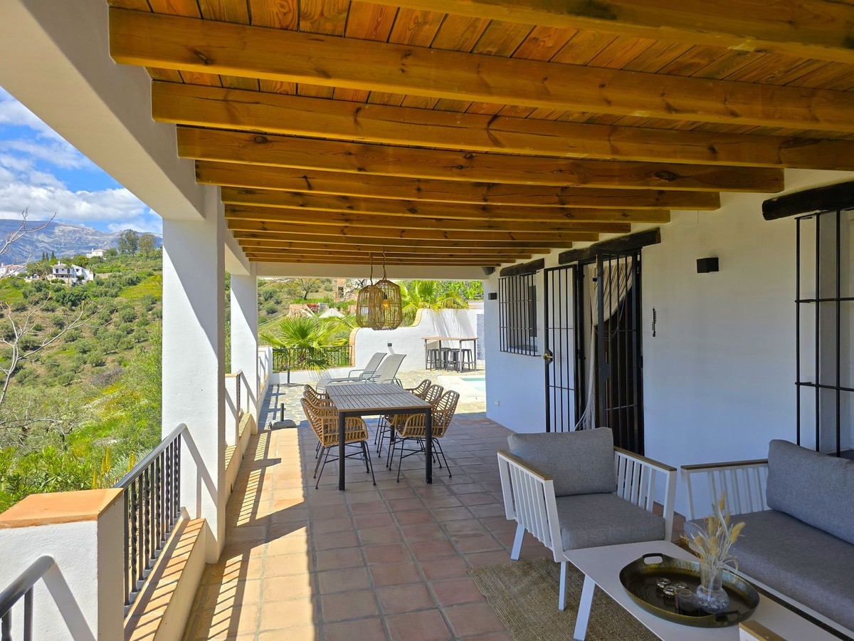 Beliggende i det fredelige andalusiske landskab og mindre end 10 minutters kørsel fra de smukke hvidkalkede landsbyer Cómpeta og Árchez, tilbyder denne enestående landejendom den perfekte blanding af ro, komfort og naturlig skønhed. Omgivet af bølgende bakker, olivenlunde og en flot udsigt over Sierra Tejeda-bjergkæden, er dette et ideelt tilflugtssted for alle, der søger en fredfyldt livsstil med nem adgang til landsbyens faciliteter, vandrestier og Middelhavskysten.