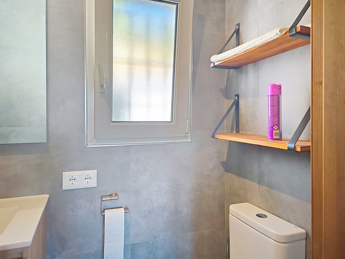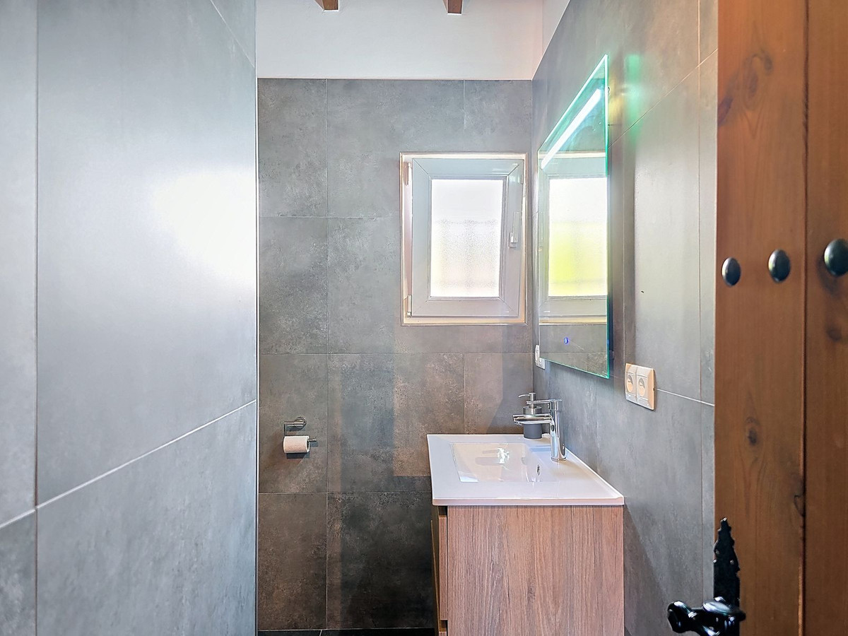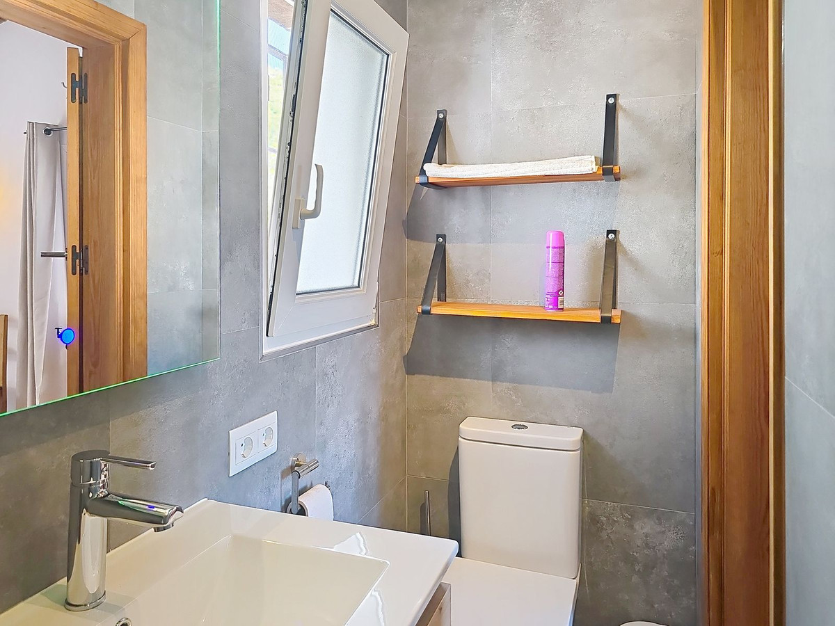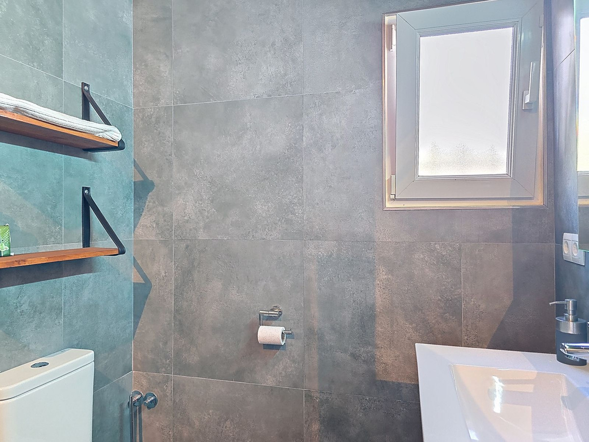 Ejendommen byder på tre velproportionerede dobbeltværelser, hver med indbygget opbevaring og udsigt over det omkringliggende landskab. Et af soveværelserne har et en-suite badeværelse, hvilket giver ekstra privatliv og bekvemmelighed. Et andet badeværelse i familiestørrelse er afsluttet med traditionelle andalusiske fliser og stilfuldt inventar, der tilbyder et lyst og funktionelt rum for både beboere og gæster.