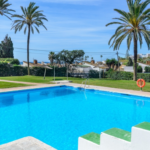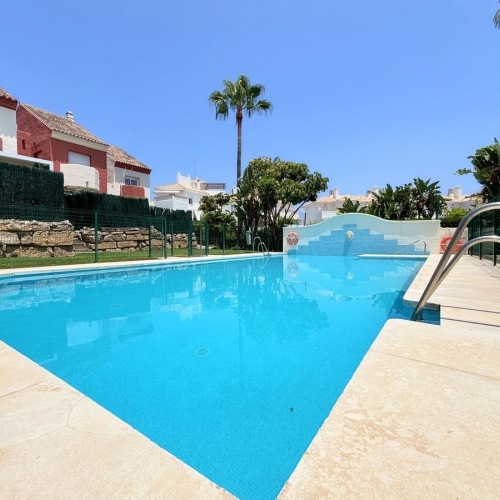 Beautiful andalucian style townhouse located on the unique village Villacana Pueblo. Beachfront urbanization with several swimmig pools and restaurants. Walking distance to the best beach cluba such a Villa Padierma nad Mett.