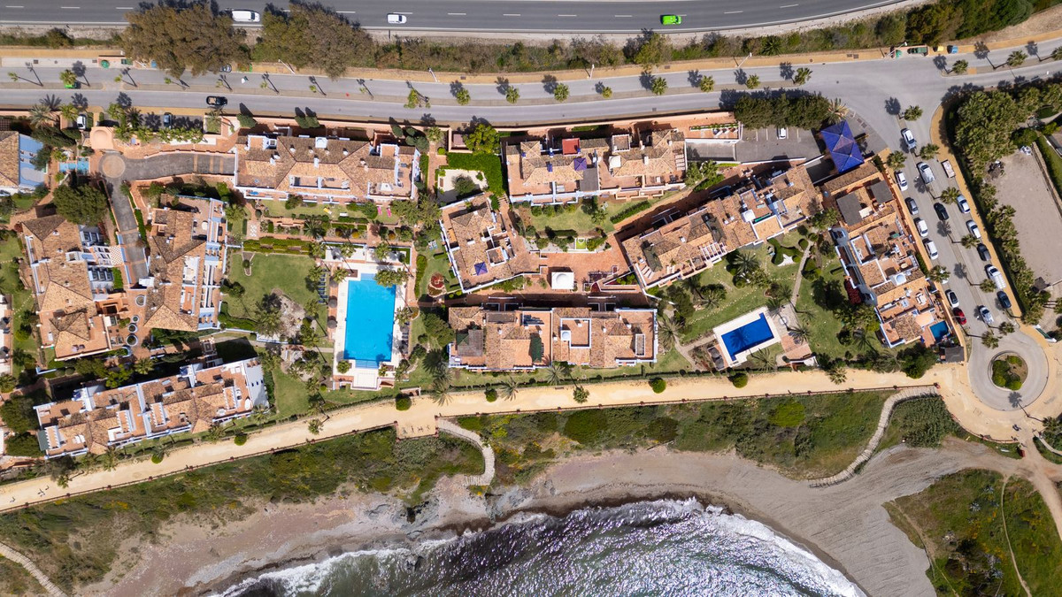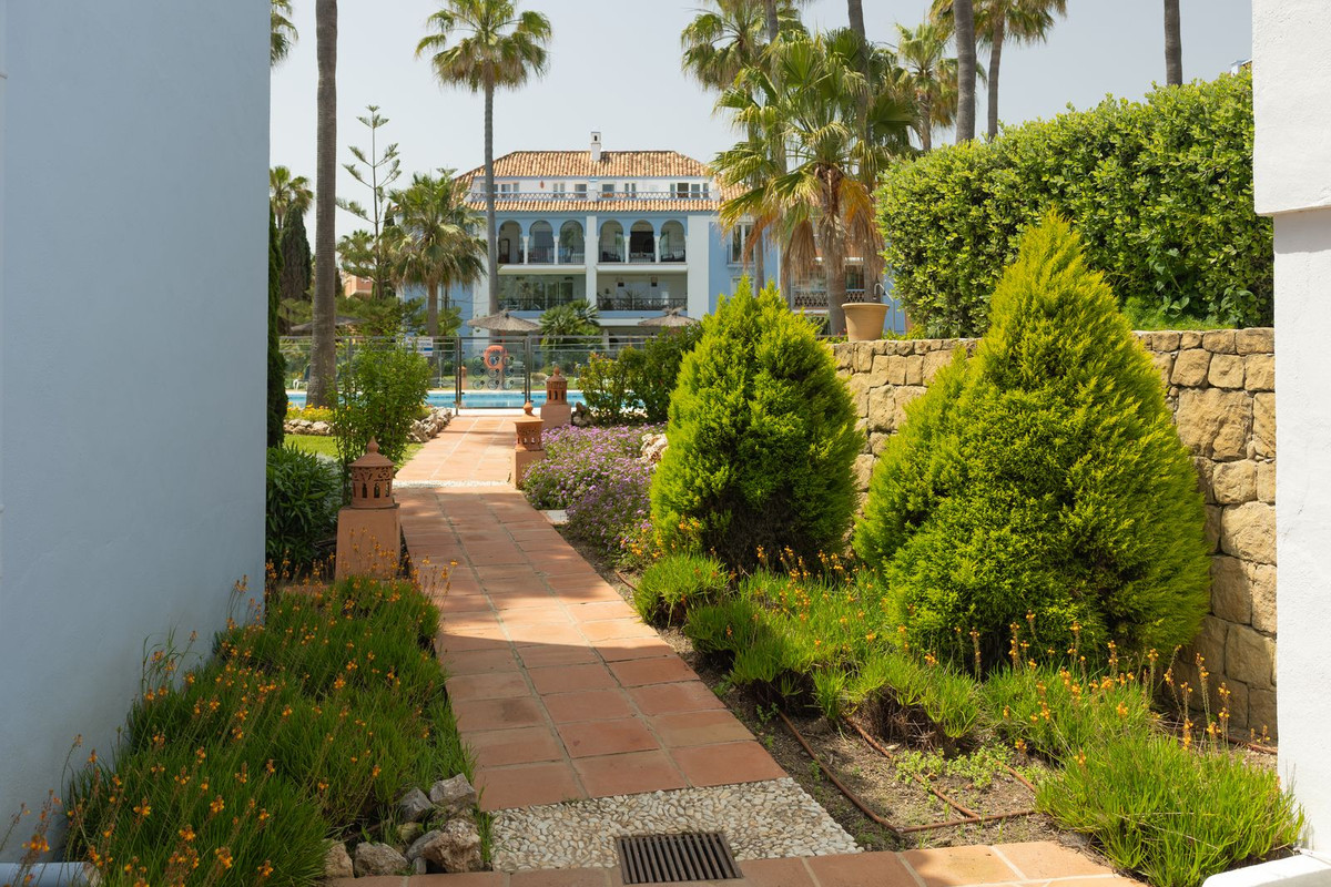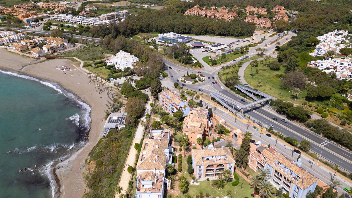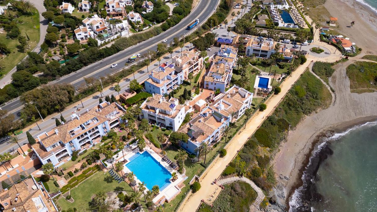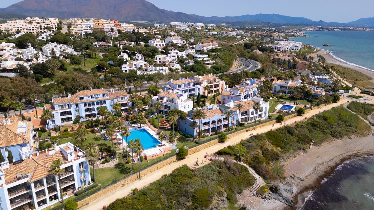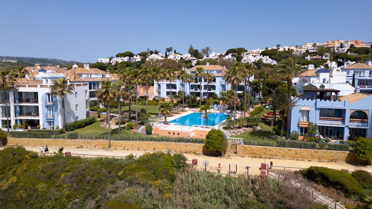 We are delighted to offer this beautiful sunny and bright apartment situated in one of the most sought after beachside development's on the Casares Costa, ideally located between the vibrant town of Estepona and La Duquesa Marina. The property has been refurbished to a high standard, yet still retains its Al Andalus Moorish original features. Comprising of two large double bedrooms, two bathrooms (one en - suite), large living / dining room with direct access to the terrace with bi – fold glass curtains leading to the communal gardens and a large eat – in kitchen. The property further benefits from one underground parking space, a storage room, two pools (one heated) and 12hr security. The lucky buyer will enjoy lovely walks along the paseo where they will find a number beach restaurants, shops and bars. Last but not least the very prestigious Finca Cortesin Golf Resort which staged the 2023 Solheim Cup is only a short drive away.