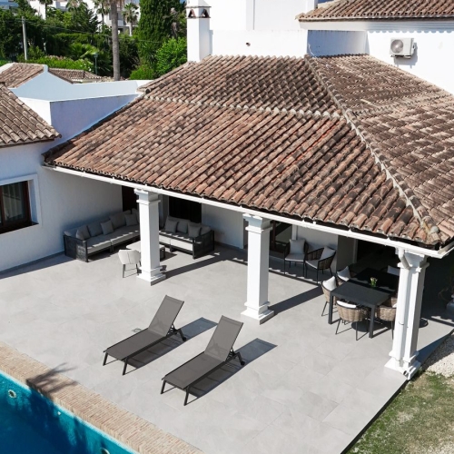 This charming villa offers a perfect blend of comfort, potential, and privacy. Nestled in a quiet cul-de-sac in El Paraíso Alto, the property sits on a generous plot surrounded by mature gardens and lush greenery. The centerpiece is a private swimming pool with spacious sunbathing terraces and panoramic views of the surroundings.