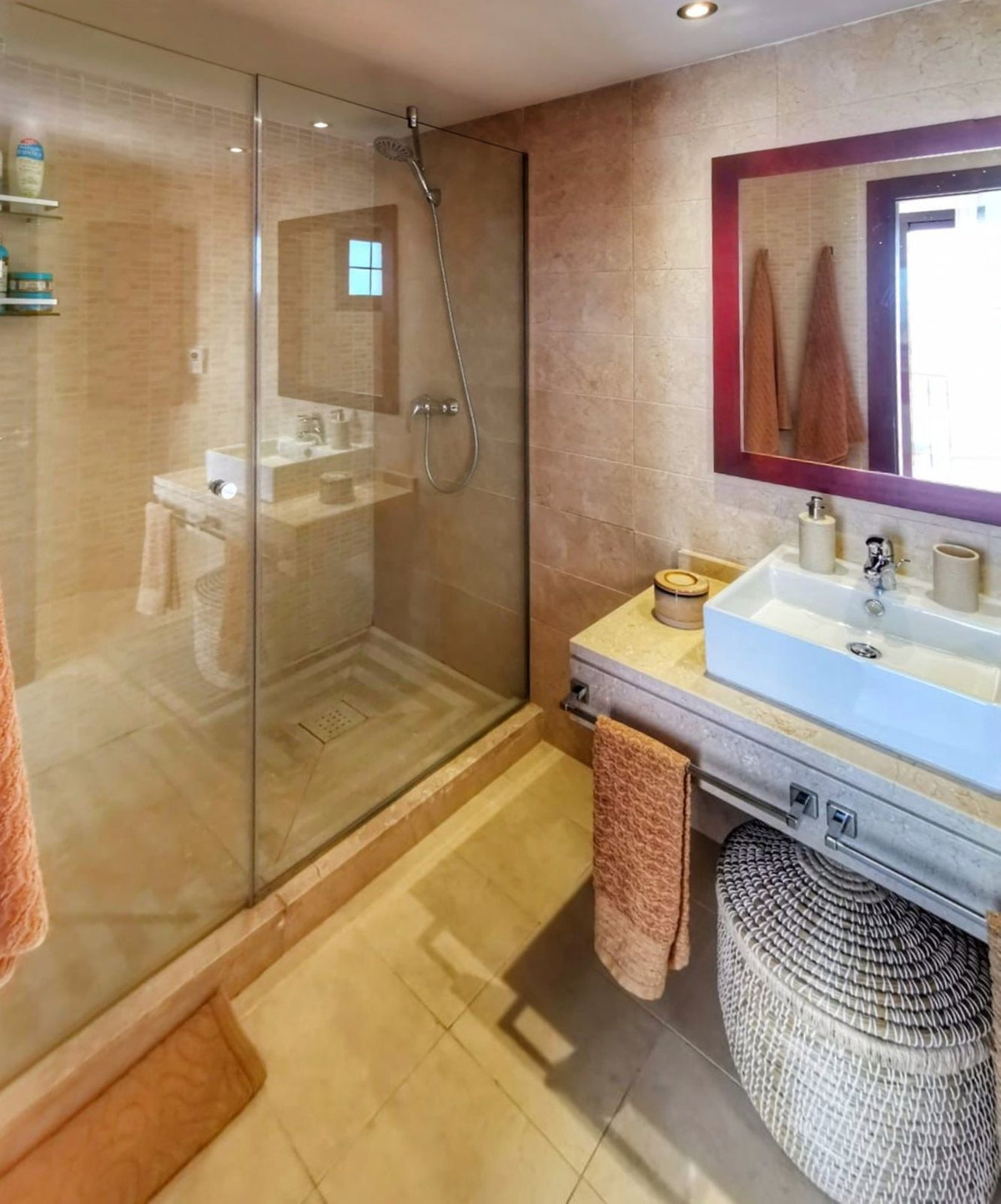 This spacious penthouse boasts 4 generously sized bedrooms and 3 luxurious full bathrooms, plus a convenient guest toilet. Step into the first floor, where a welcoming entrance hall leads to a stylish staircase, a guest toilet, and a serene bedroom with an en-suite bathroom. The open-plan kitchen seamlessly flows into the elegant living-dining area, opening onto a expansive terrace—your private oasis with ample space for entertaining or unwinding.
