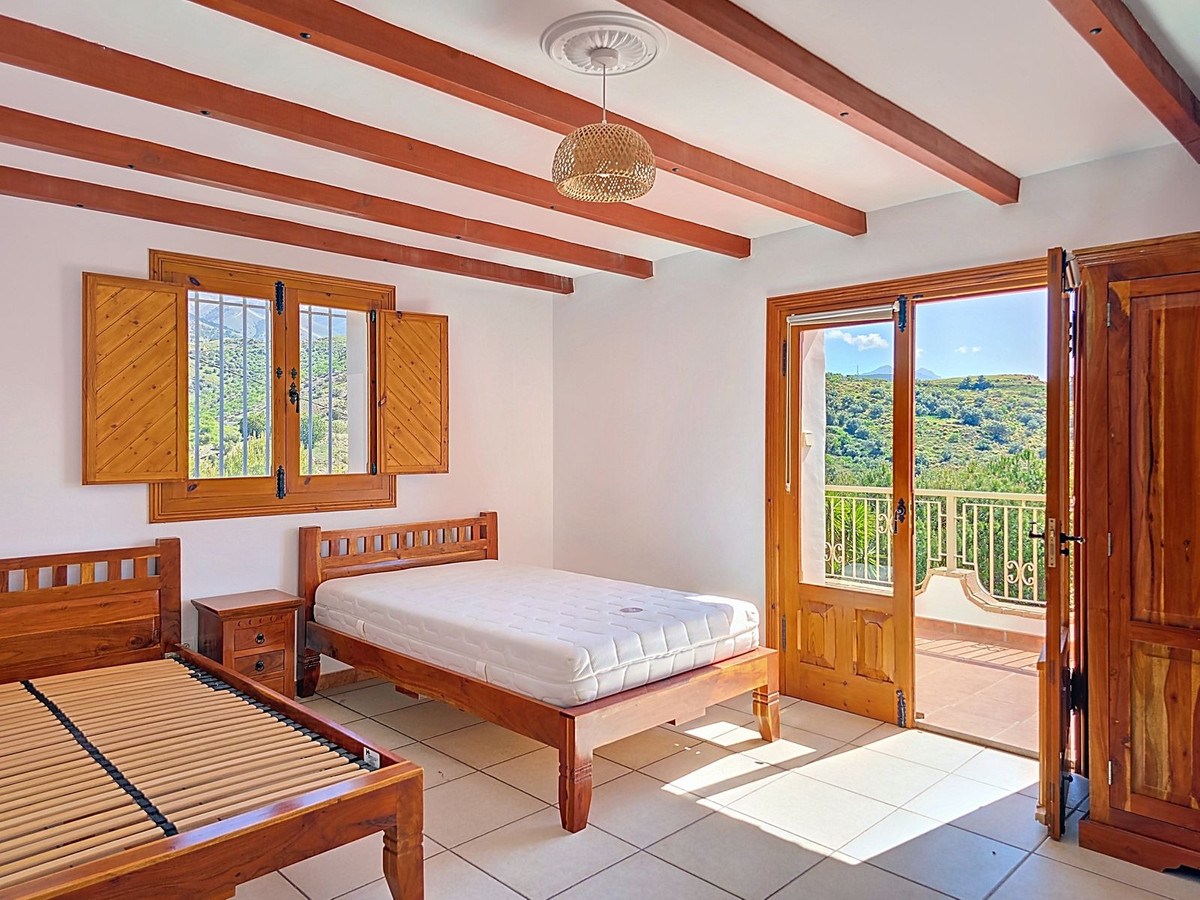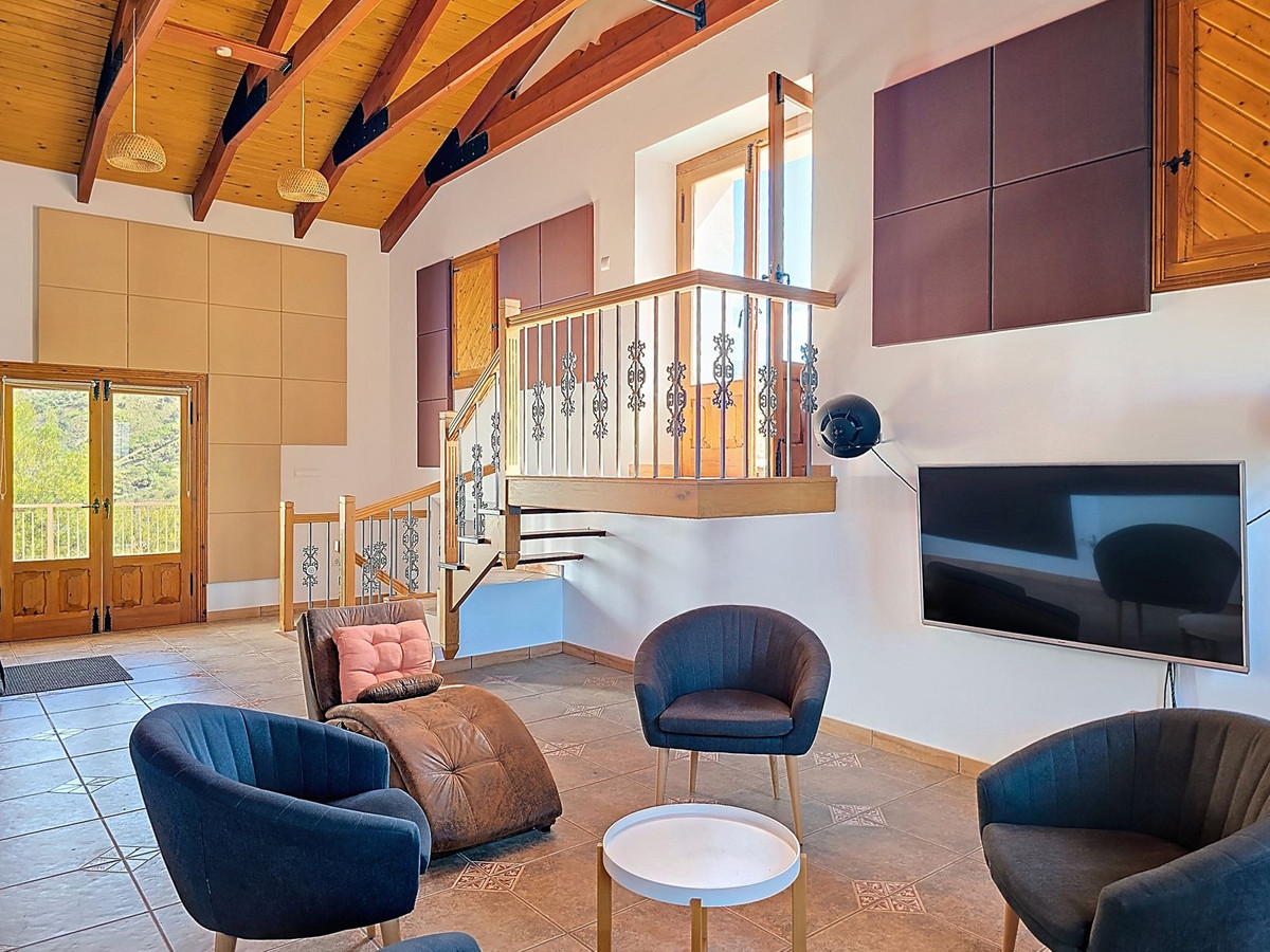 Hovedhuset kan prale af tre soveværelser, hver med eget badeværelse og direkte adgang til terrasserne – en problemfri blanding af inde- og udeliv. Den lyse, åbne opholdsstue er forbundet med den øverste terrasse og tilbyder de perfekte rammer til underholdning eller afslapning med en fantastisk udsigt over bjergene som baggrund.