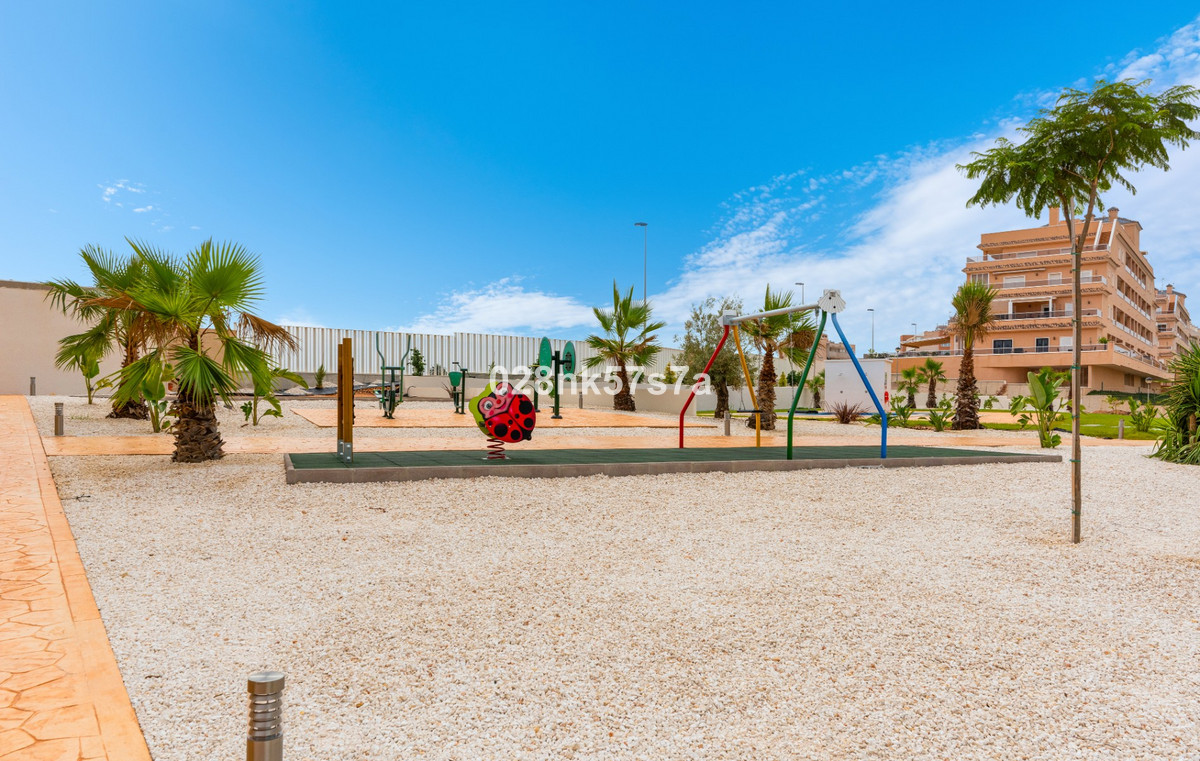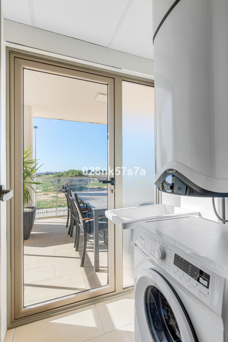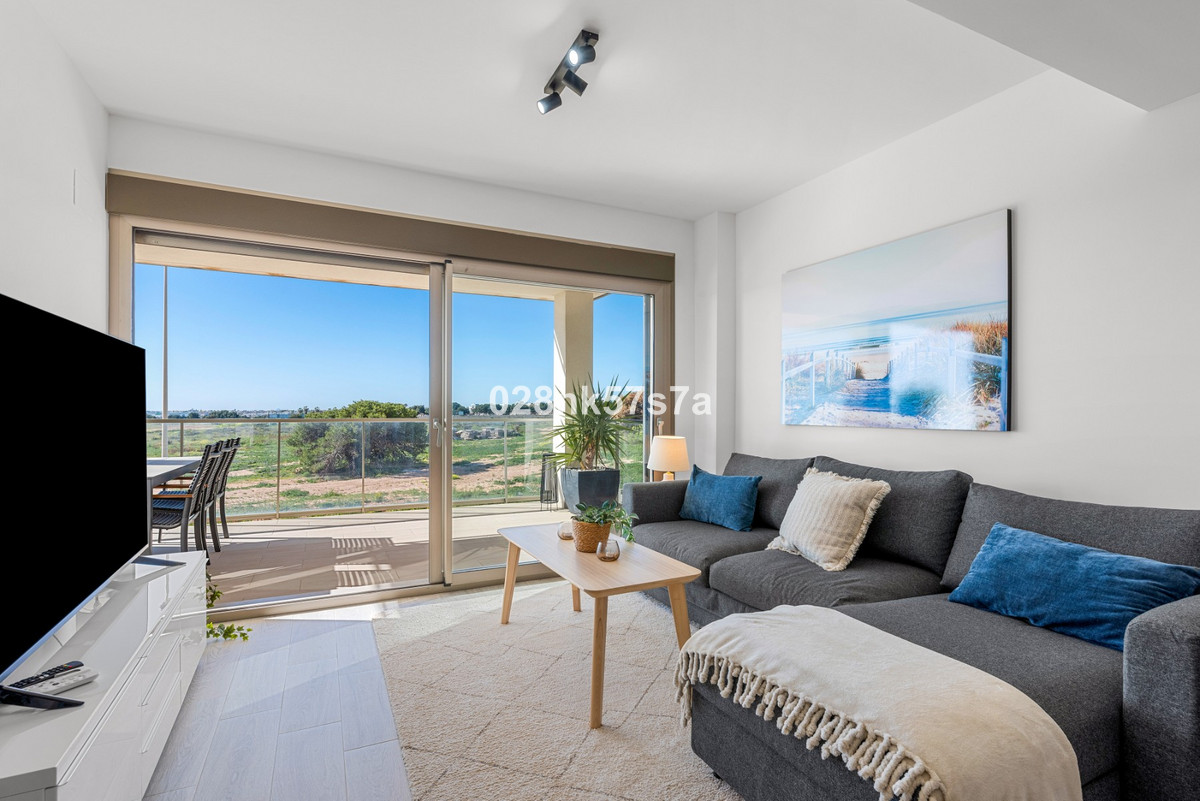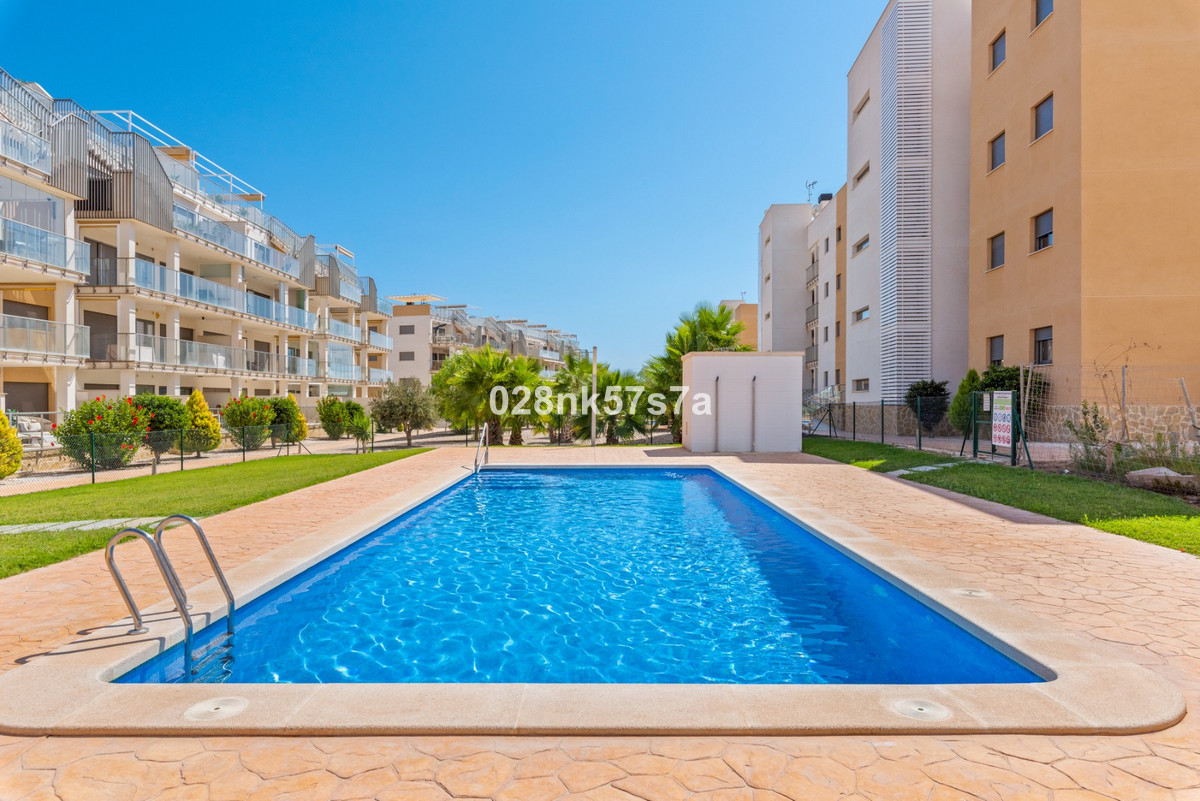 Here we have a modern and neat apartment on the 2nd floor with 2 bedrooms, 2 delicate bathrooms, spacious living room with open kitchen, and a large terrace outside the living room. The apartment is well equipped and is sold with furniture included in the price. South-facing with ideal sun conditions.There is a lift in the building and an underground garage with parking space and private storage room. You are within walking distance of a good selection of restaurants, cafes and the shopping center in La Zenia. If you want to go to the beach, you can cycle down in about 15 minutes. Otherwise, it is worth mentioning that there are three 18-hole golf courses nearby.