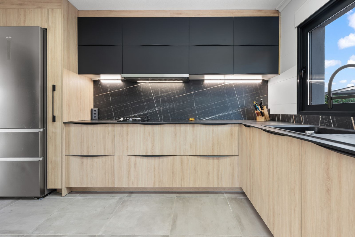 • Elegant L-shaped kitchen fully equipped. Generously sized workspace, connected to a bright open-plan lounge area featuring a wood-burning stove.